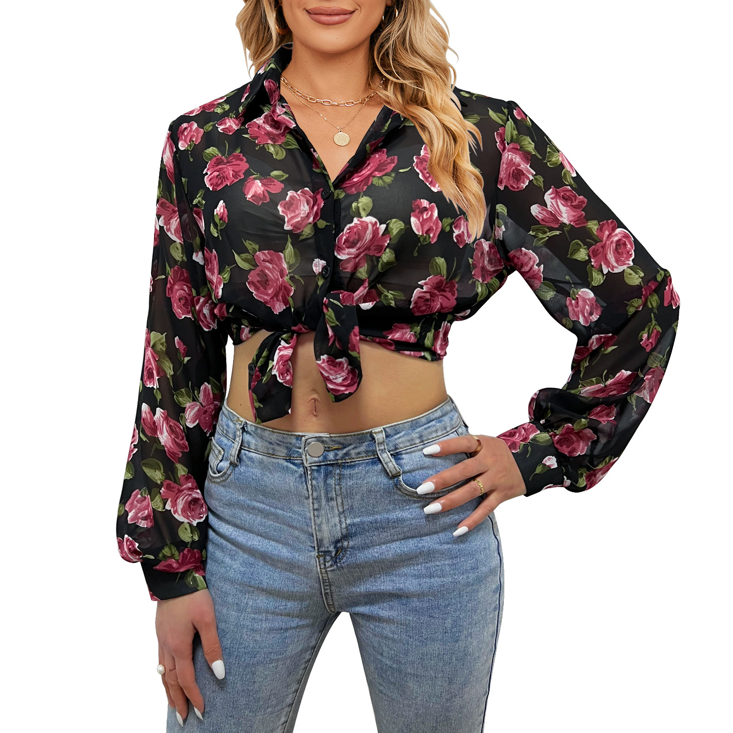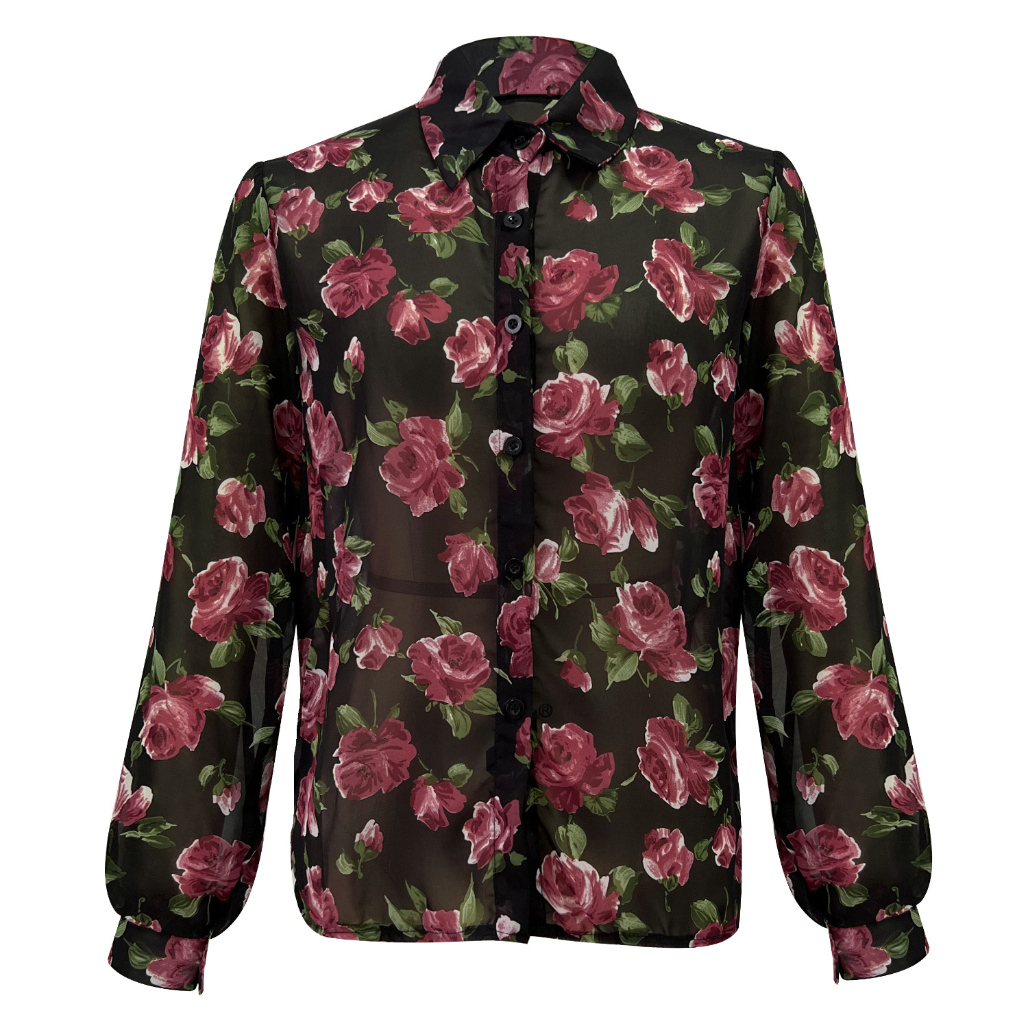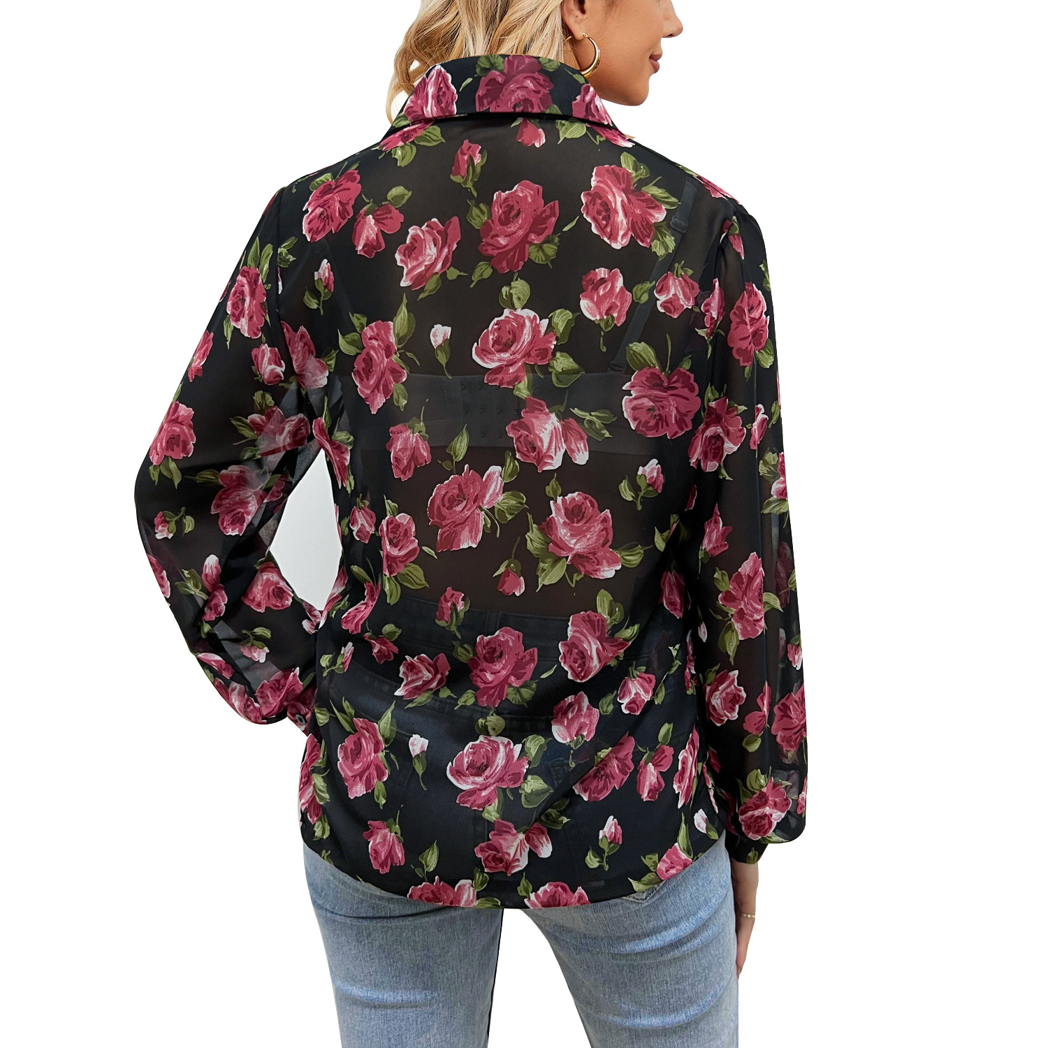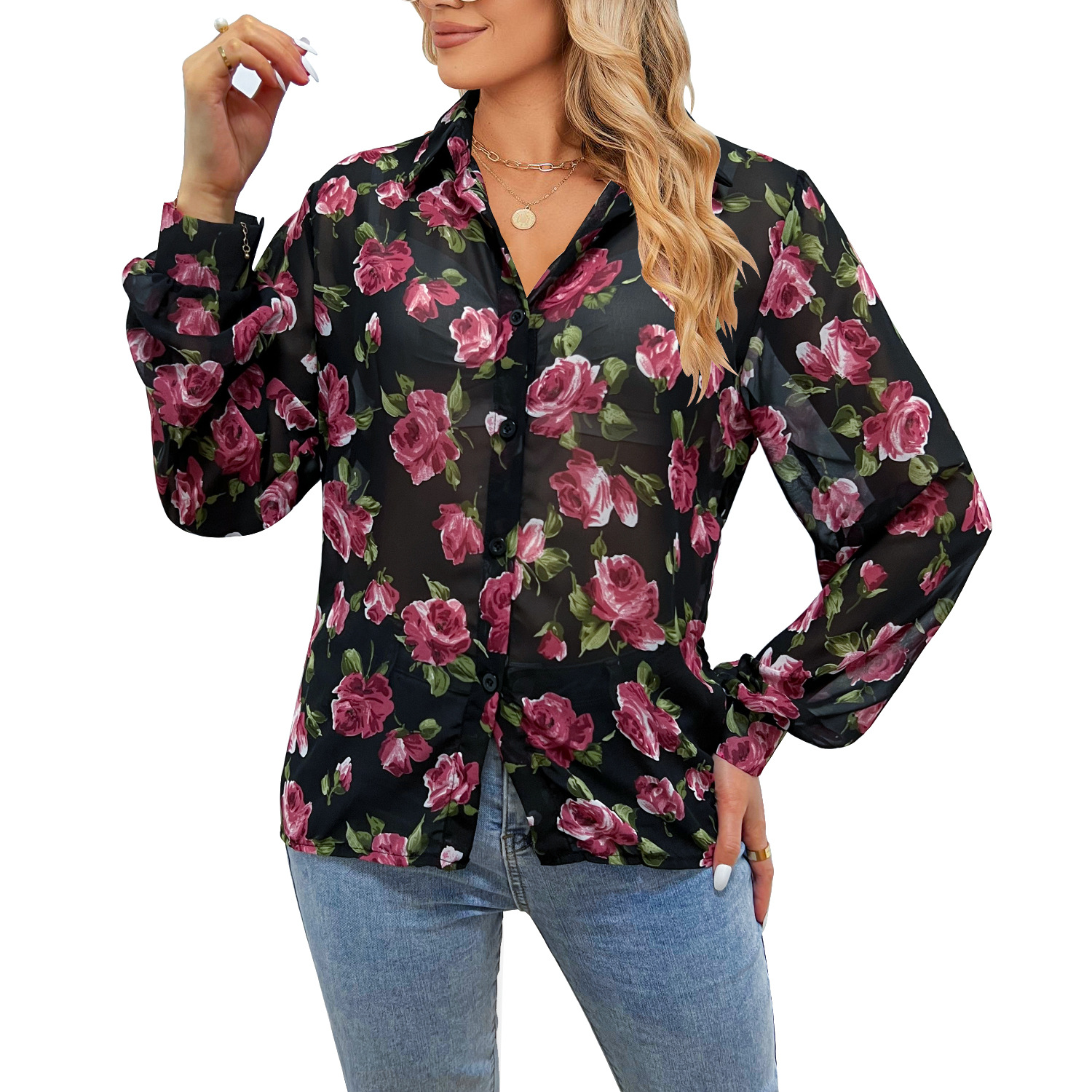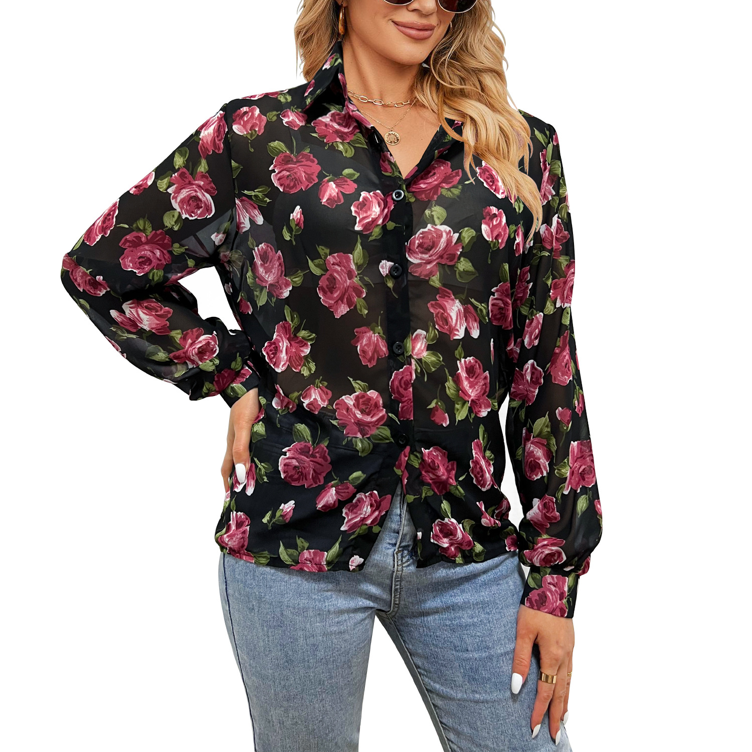 Women Clothing Spring Summer Wih Top Chiffon Floral Shirt
