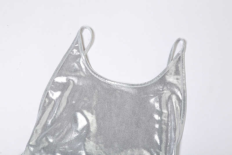 Women Clothing Summer Reflective Metallic Strap Backless Sexy Slim Dress