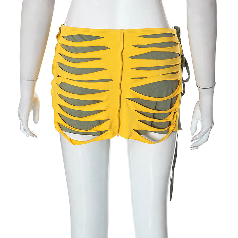 Women Clothing Summer Solid Color Casual Burnt Floral Tied Slim Fit Sheath Ultra Short Skirt for Women
