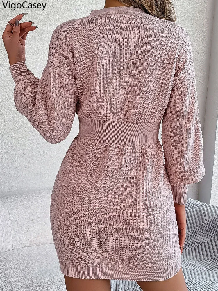Women Pink Knit Bodycon Dress