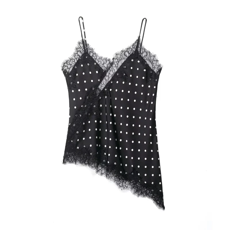 Women Polka Dot Lace Asymmetrical Hem Cami Top