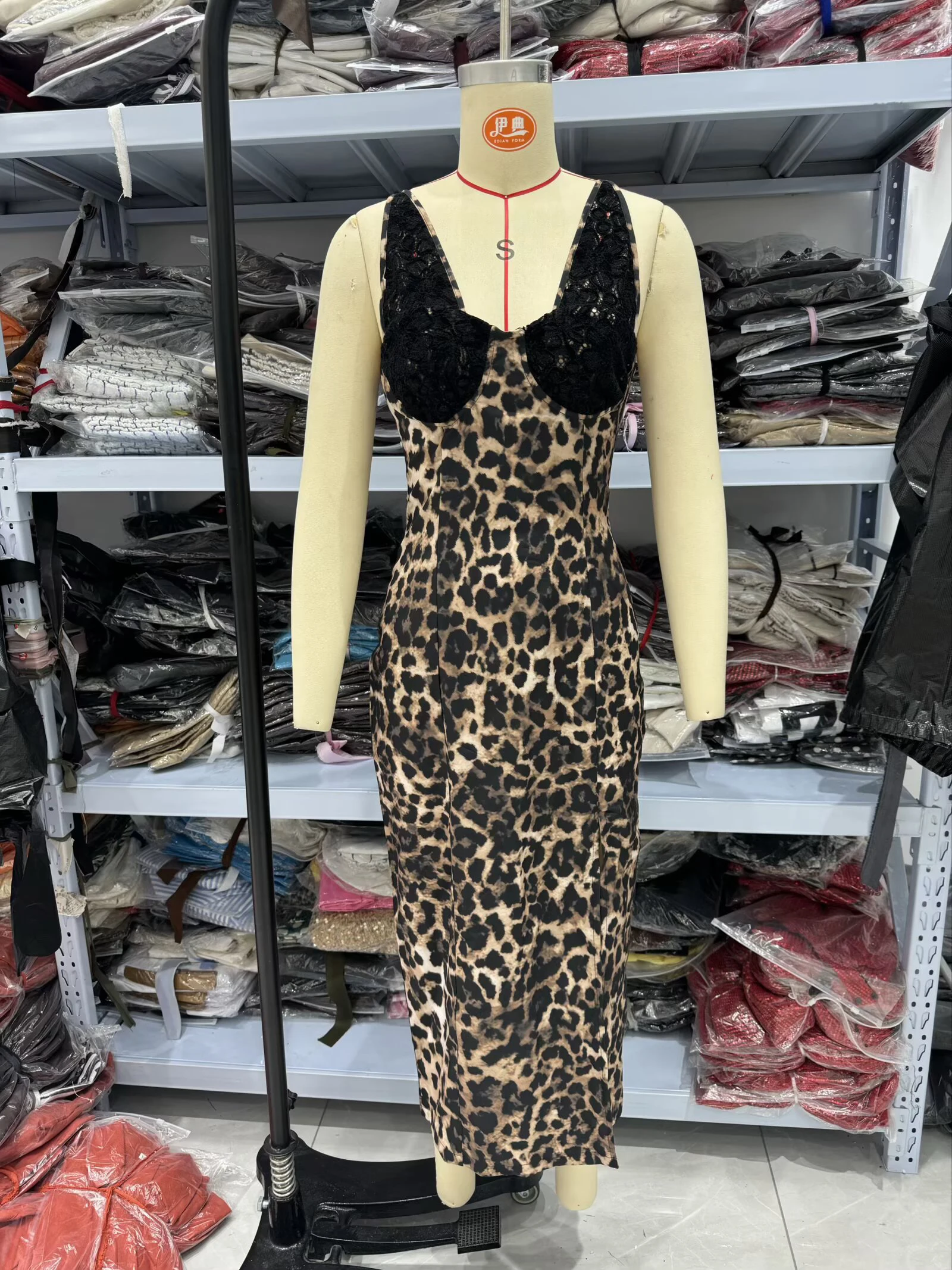 Women’s 2025 Animal Print Lace Midi Dress