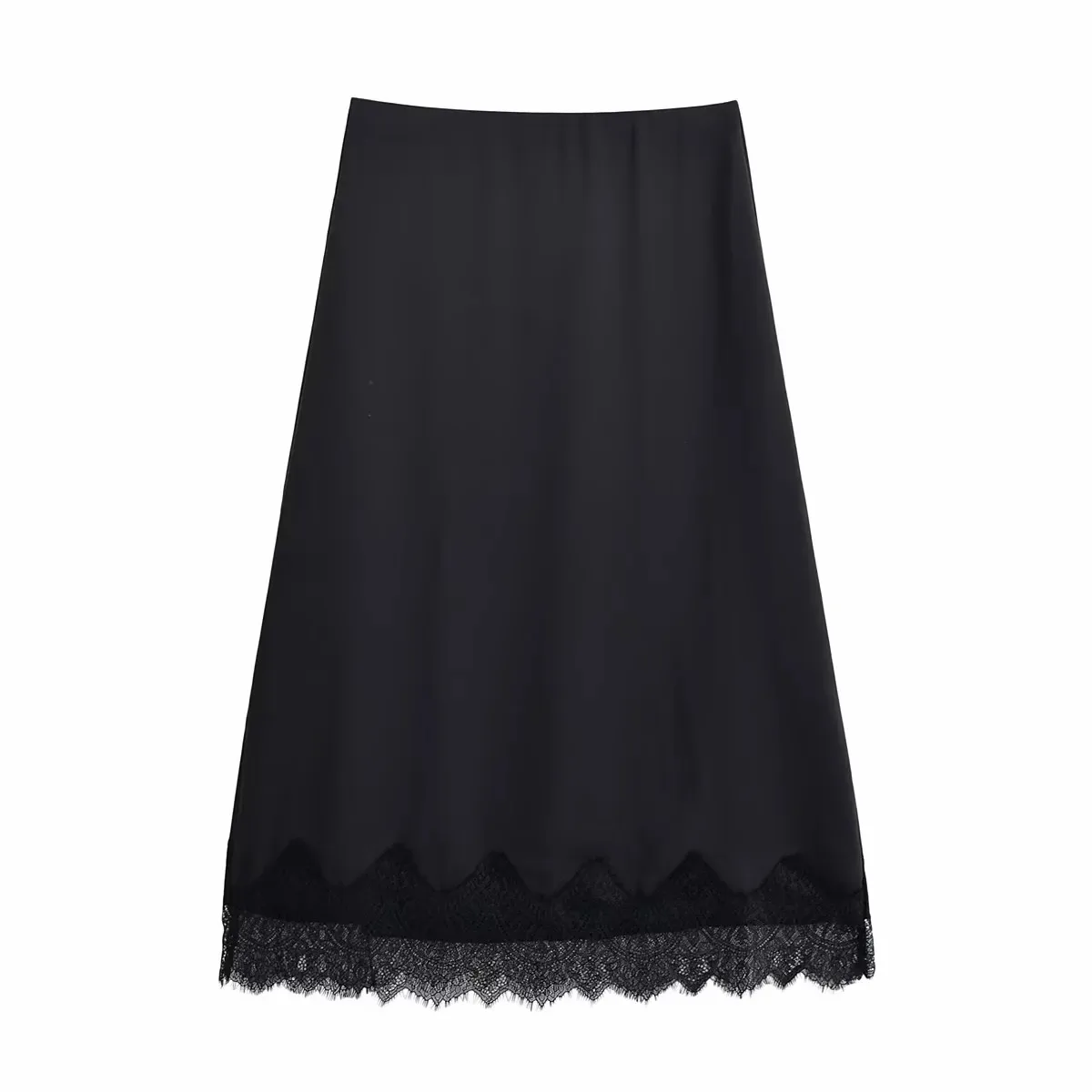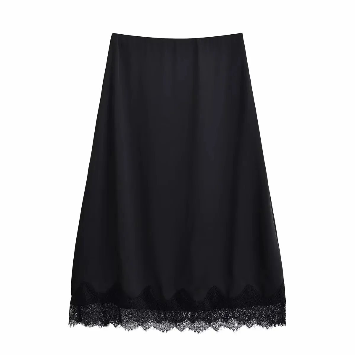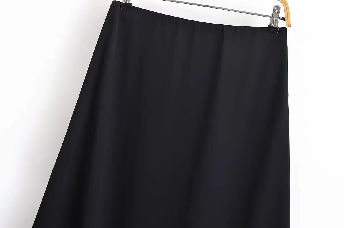 Women’s 2025 Elegant Satin Lace Black Long Skirt