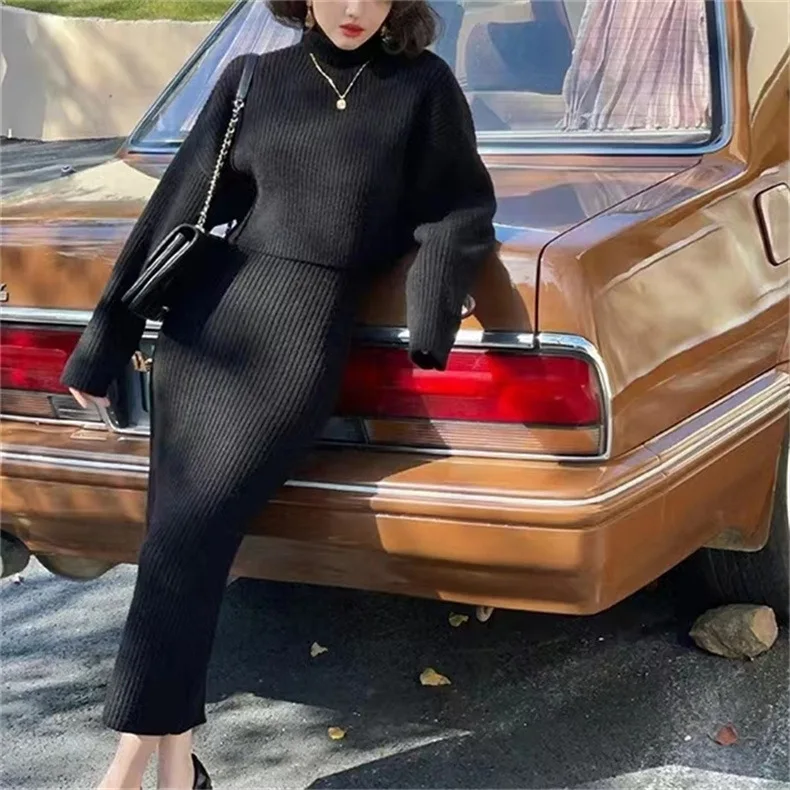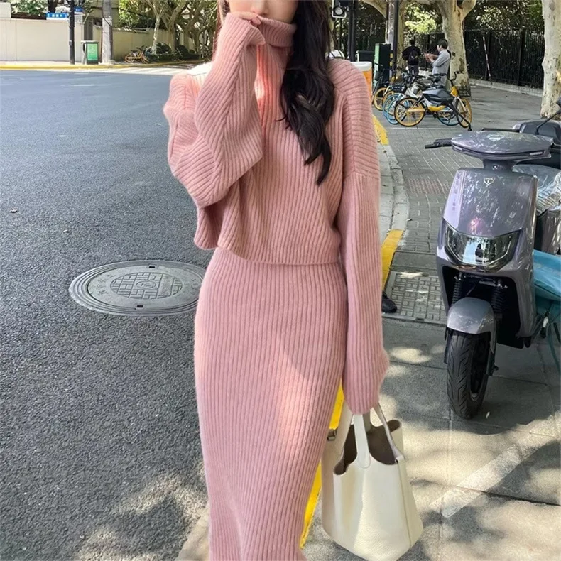 Women’s 2025 Knit Set High Neck Sweater and Dress Two Piece