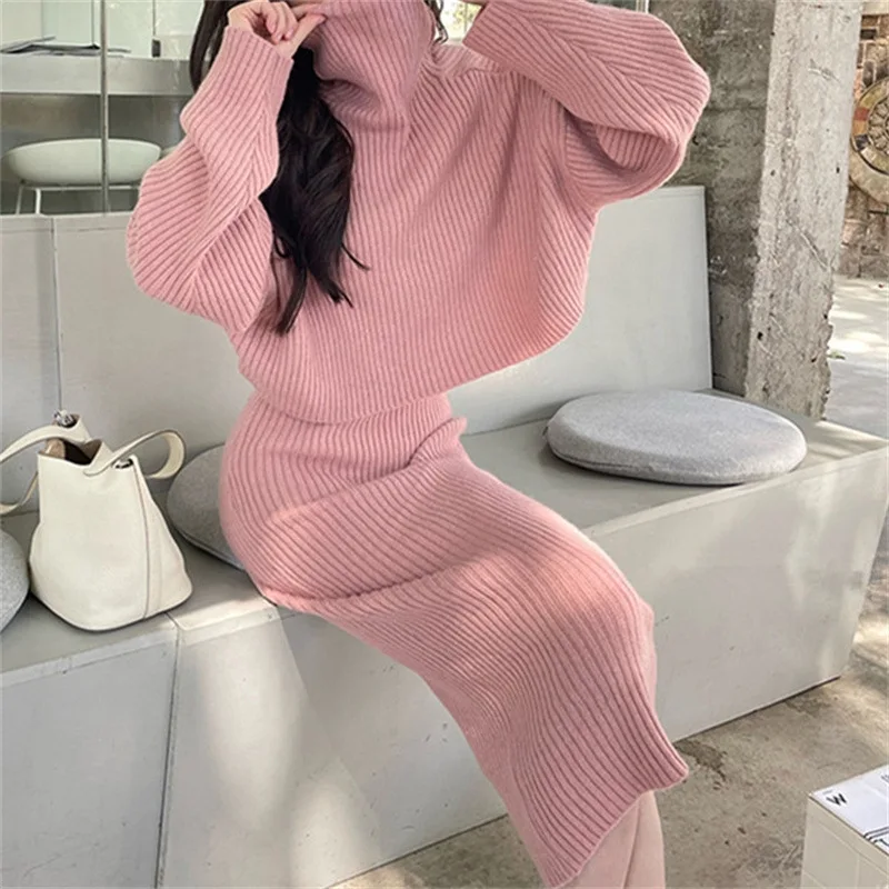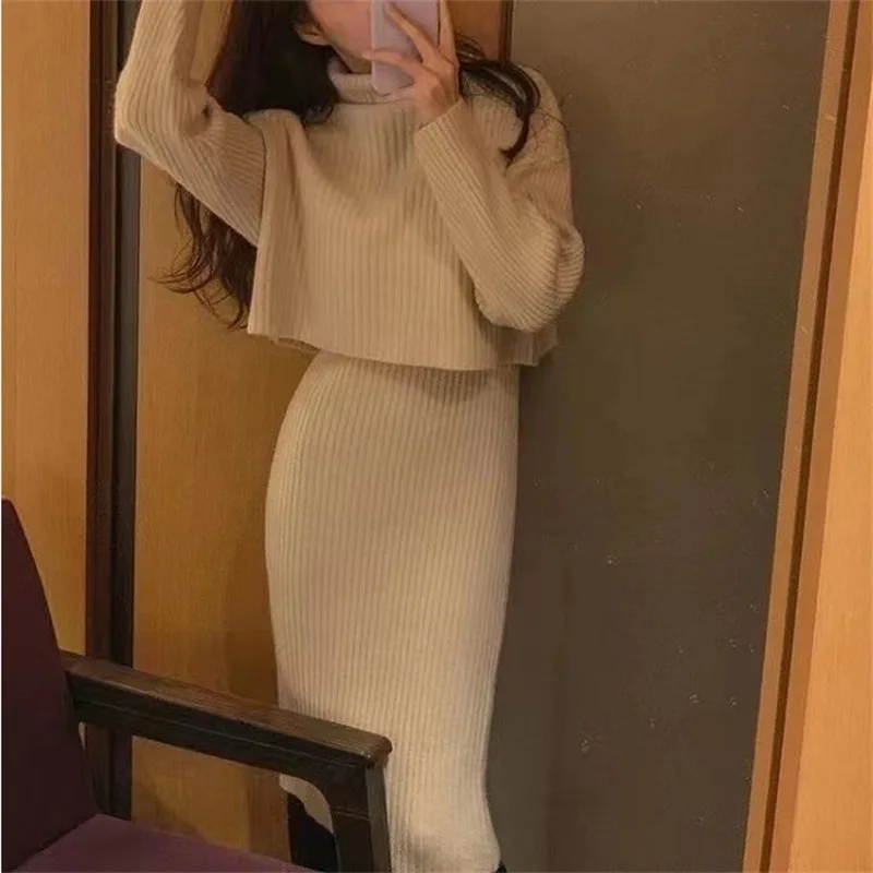 Women’s 2025 Knit Set High Neck Sweater and Dress Two Piece