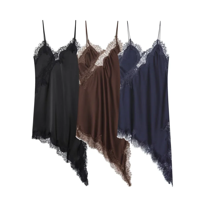 Women’s 2025 Slimming Lace Asymmetric Satin Dress