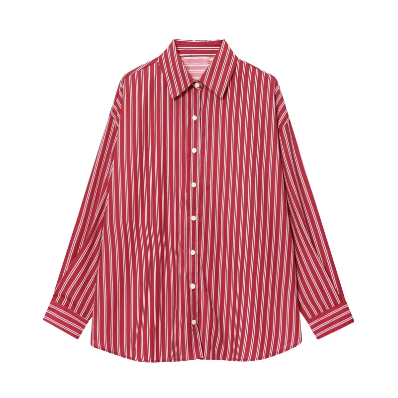 Women’s 2025 Striped Lapel Loose Poplin Shirt