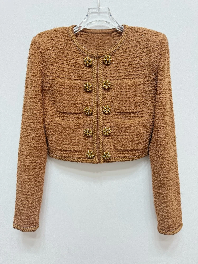 Women’s 2025 Waffle Knit Cropped Jacket Elegant Short Coat