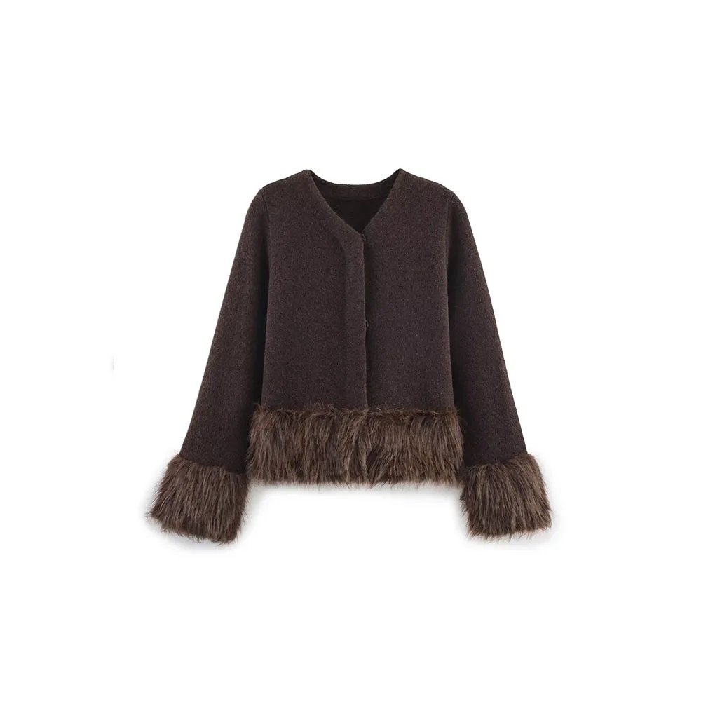 Women’s Autumn Faux Fur Spliced Knit Jacket