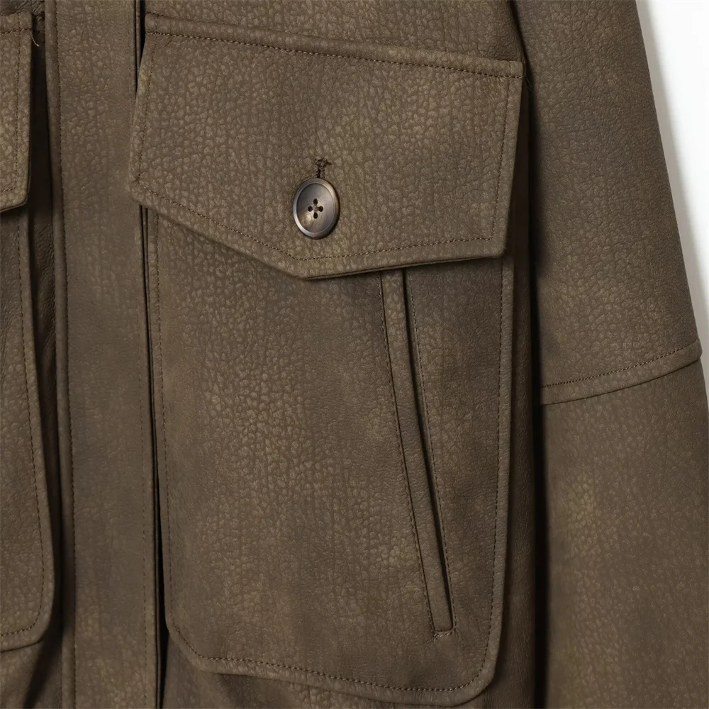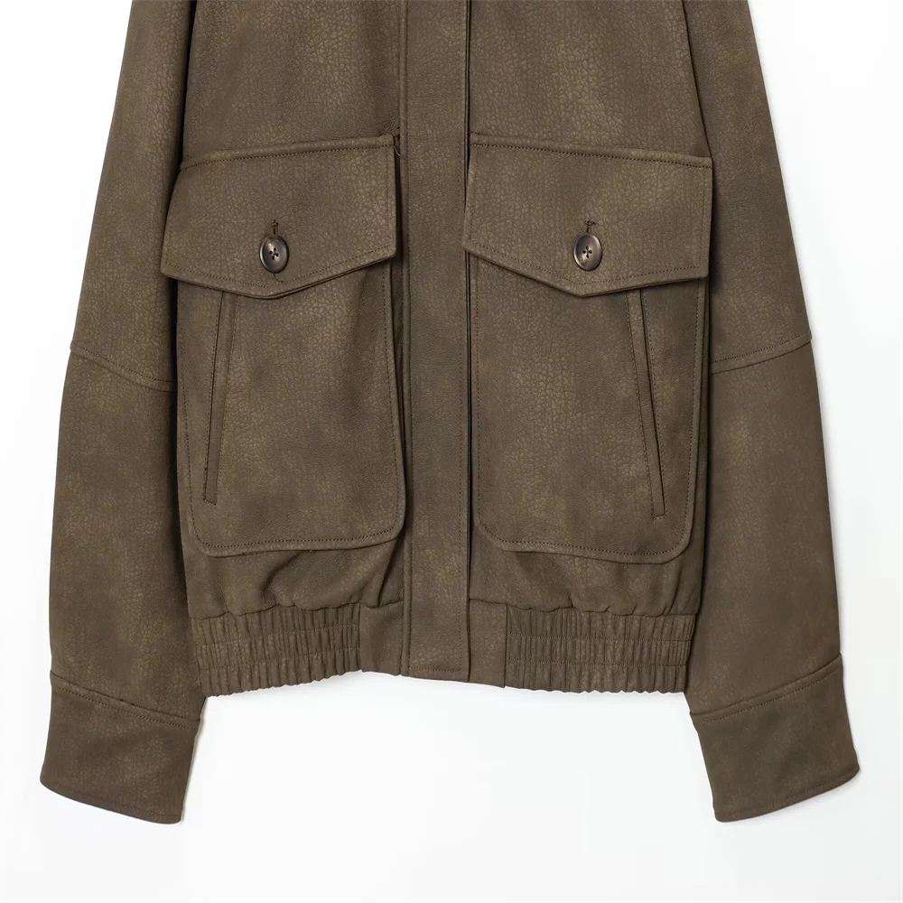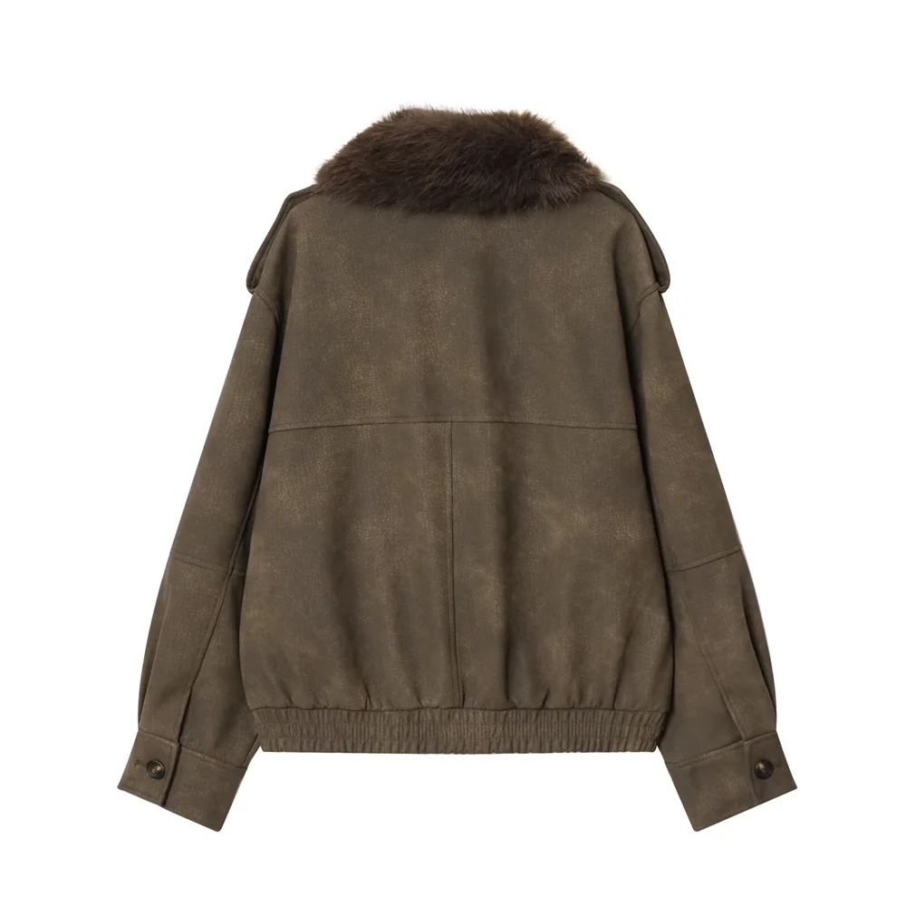 Women’s Autumn Suede Effect Jacket with Detachable Collar