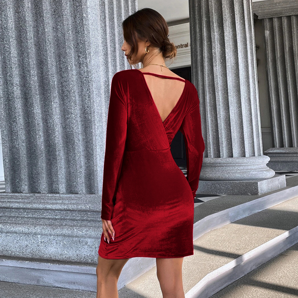 Women’s Backless Long Sleeve Velvet Slimming Dress