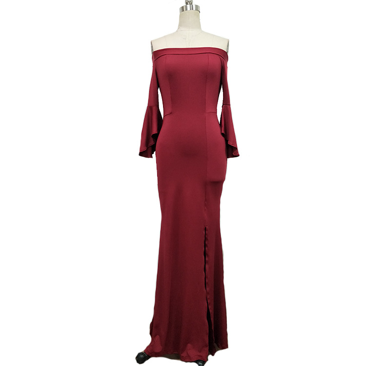 Women’s Bell Sleeve Off-Shoulder Split Evening Dress