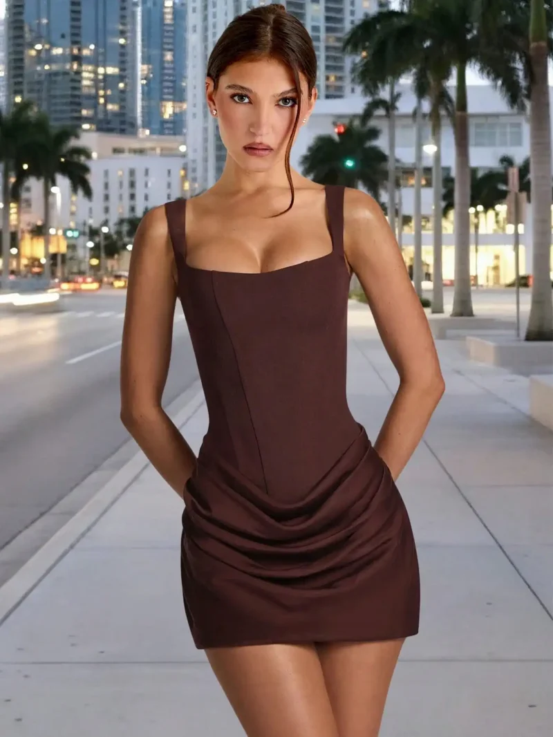Women’s Brown Draped Summer Evening Dress