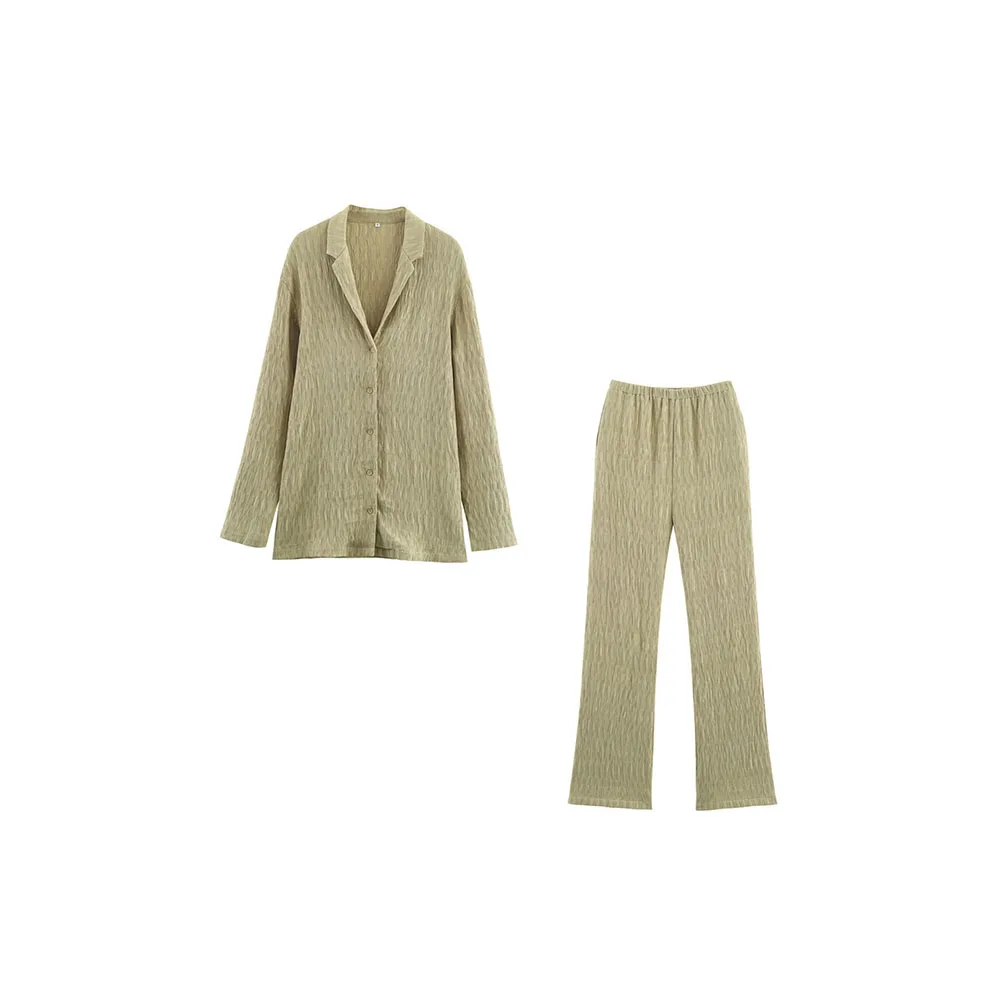 Women’s Casual Linen-Blend Shirt with High-Waist Pants