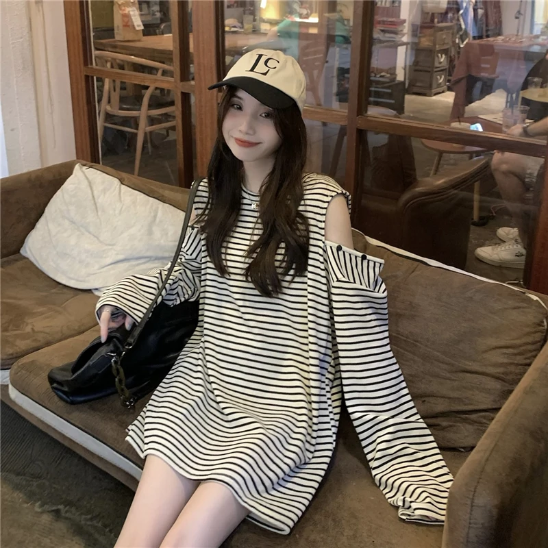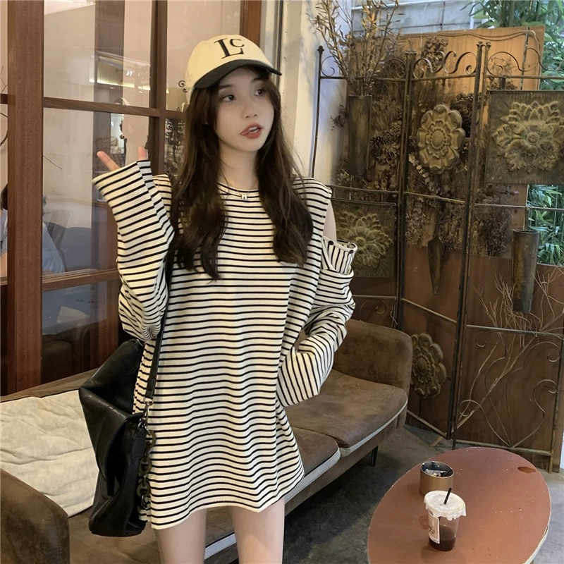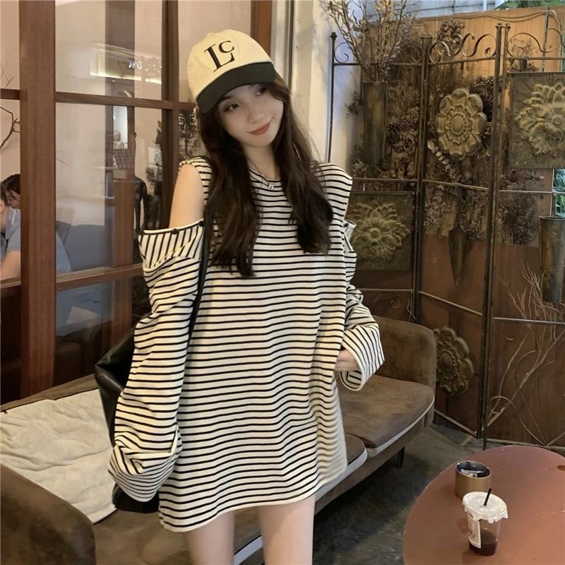 Women’s Casual Striped Tee Loose Fit Korean Style Top