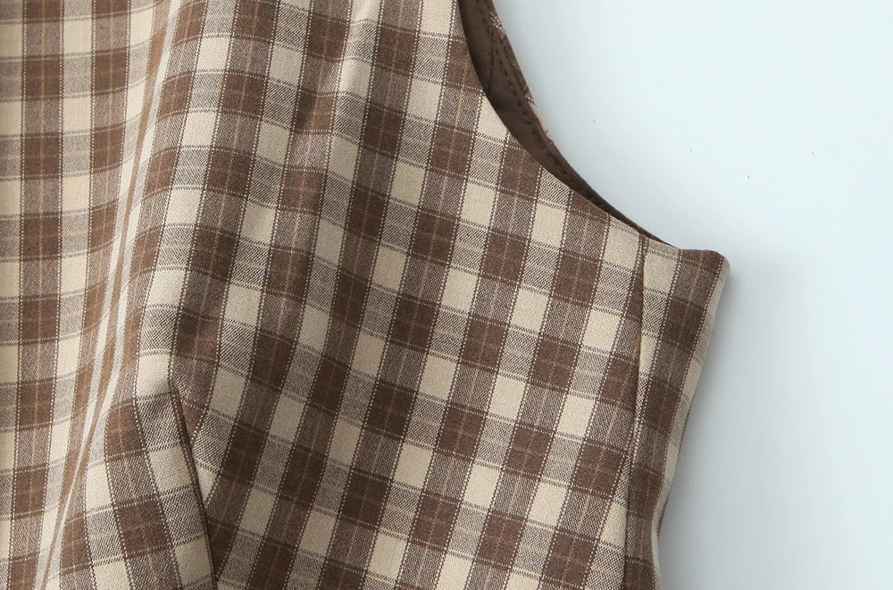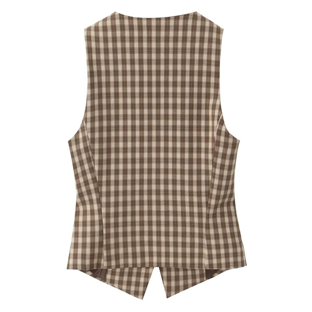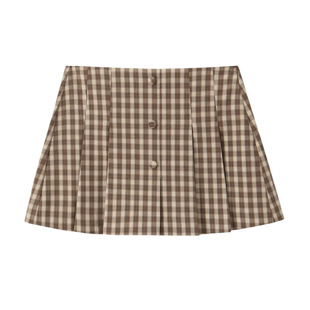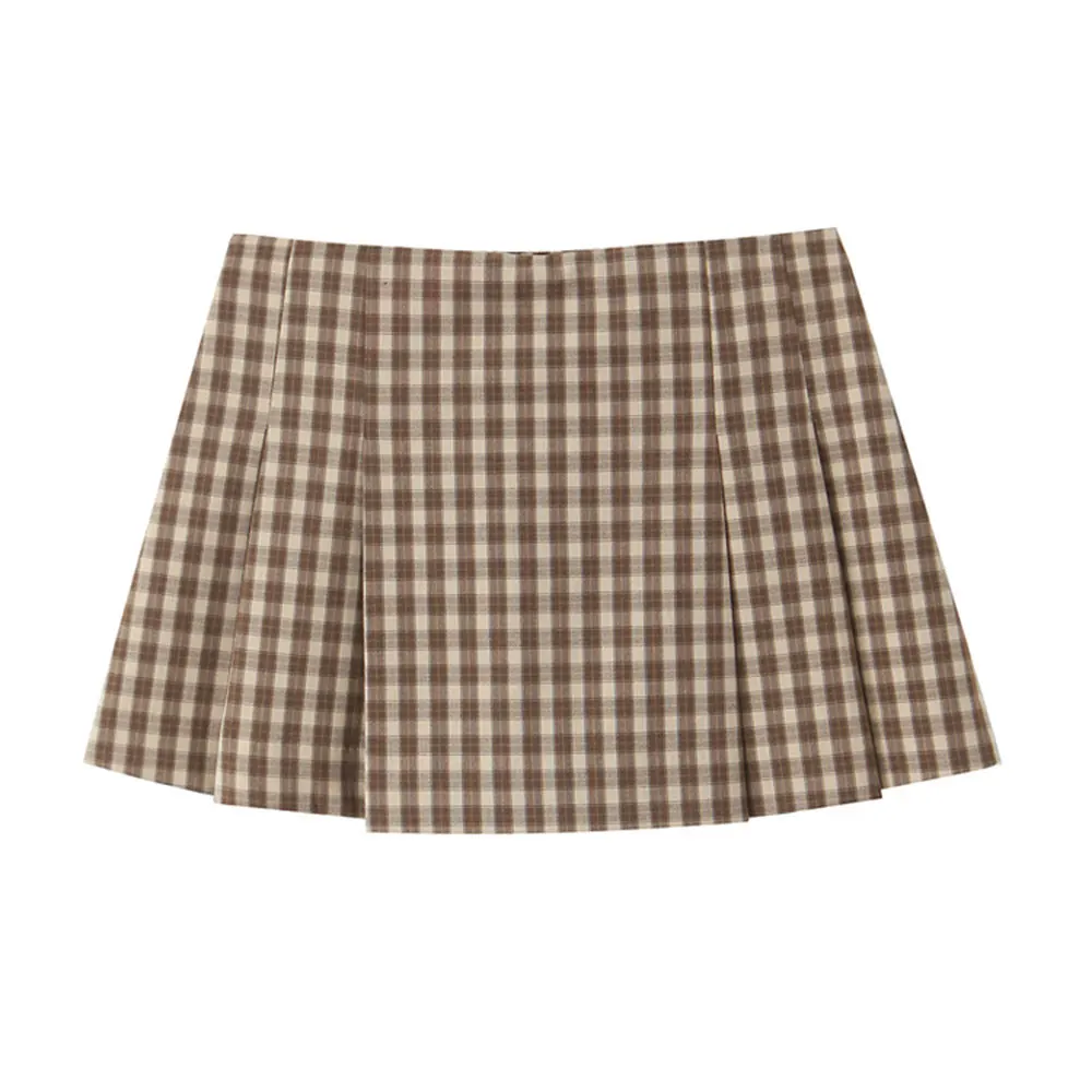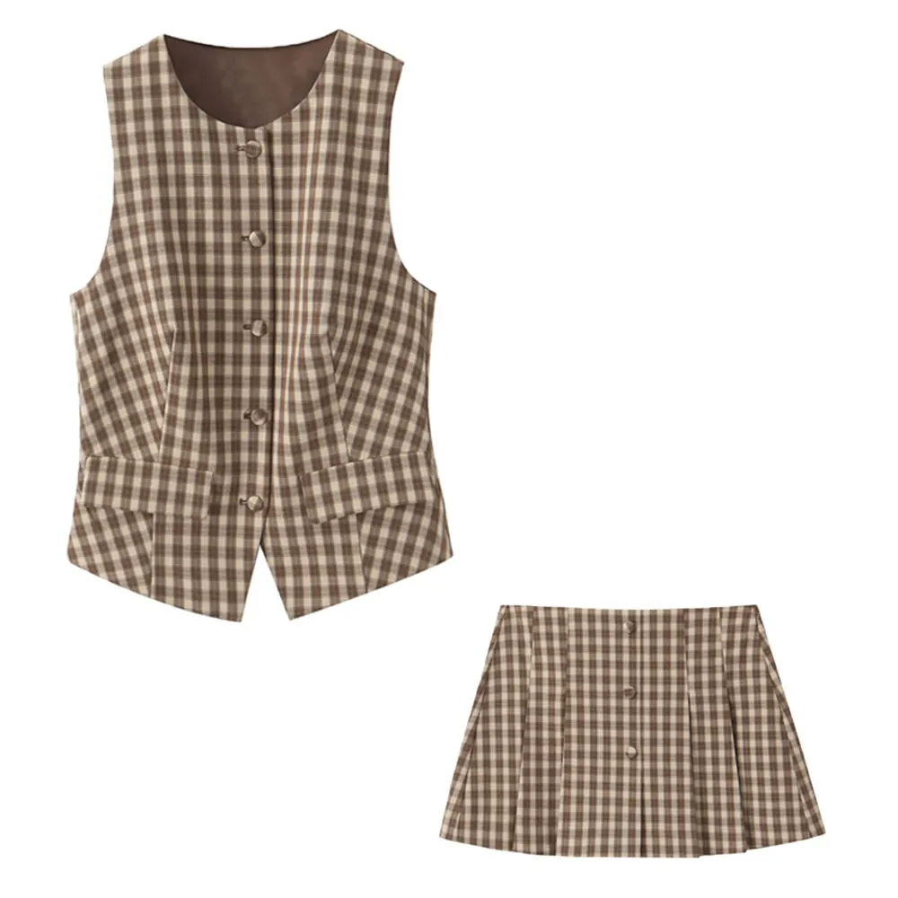Women’s Checkered Waistcoat Top & Pleated Skort Two-Piece Set