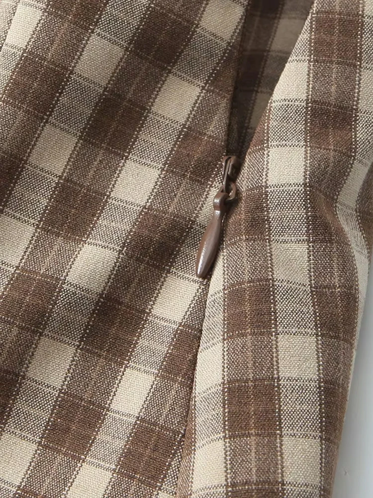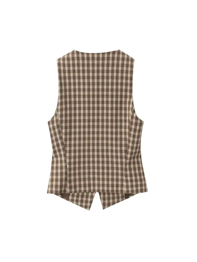 Women’s Checkered Waistcoat Top & Pleated Skort Two-Piece Set