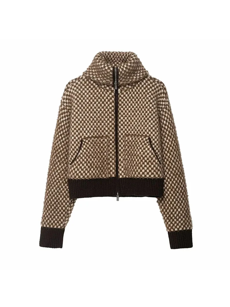 Be the first to review “Women’s Color Block Wool Zipper Jacket”