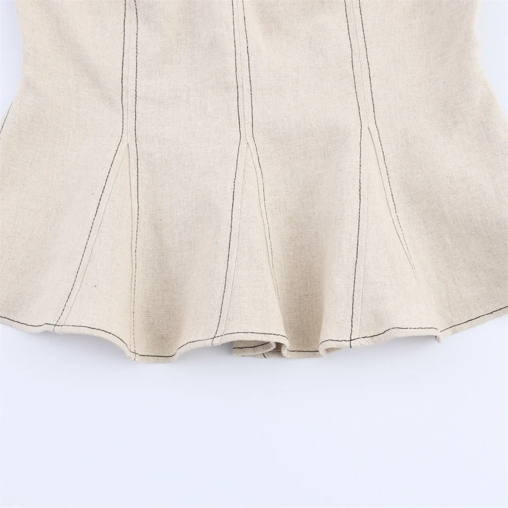 Women’s Color-Contrast Skirt Top & High-Waist Straight Pants Set