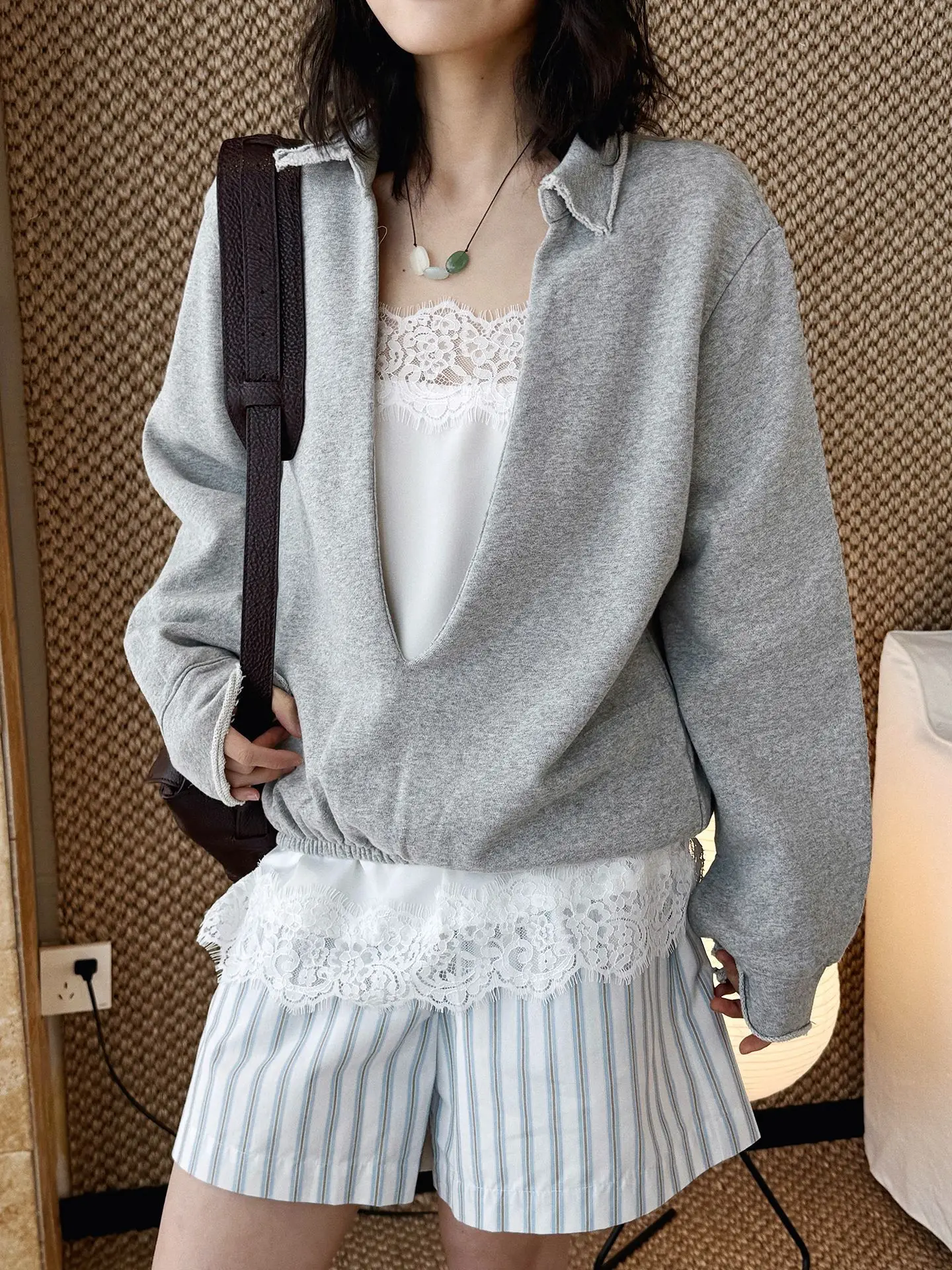 Women’s Cotton Hoodie Deep V Neck Long Sleeve
