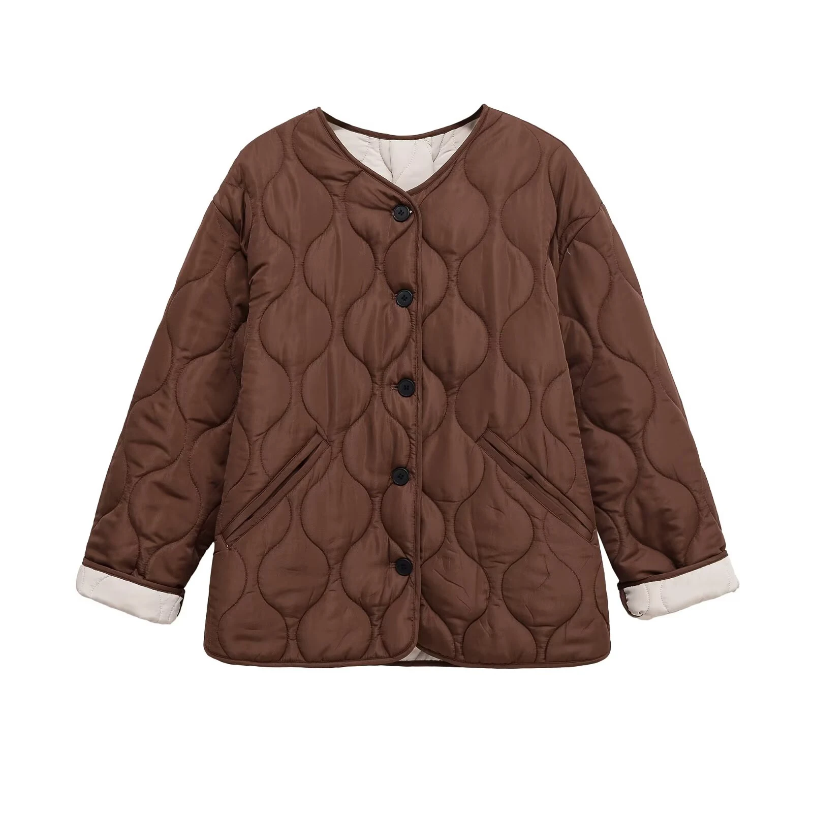 Women’s Brown Diamond Grid Cotton Coat