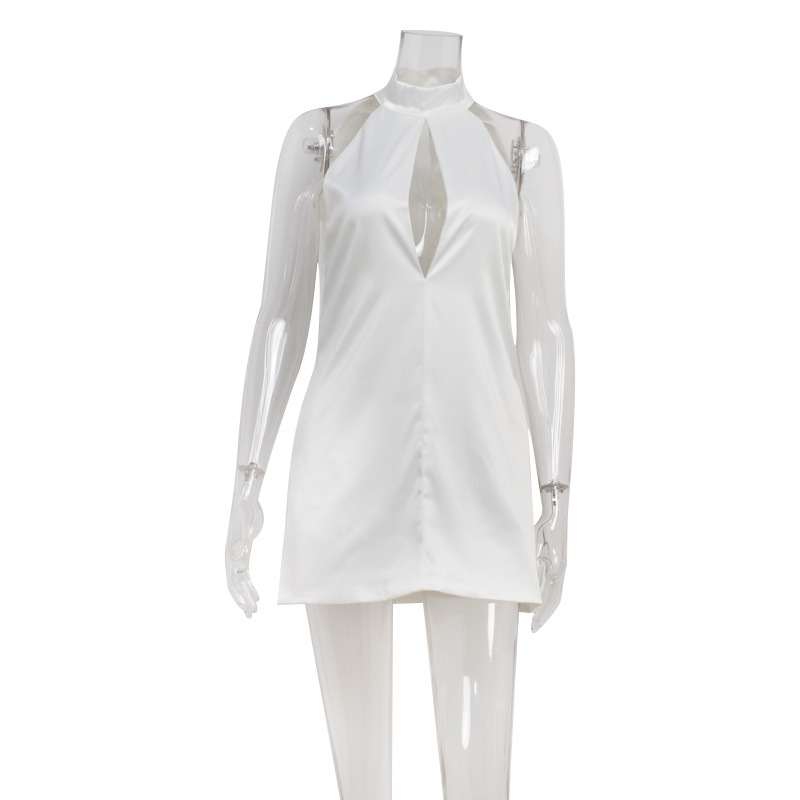 Women’s Elegant Halter Sleeveless Solid Color Short Dress