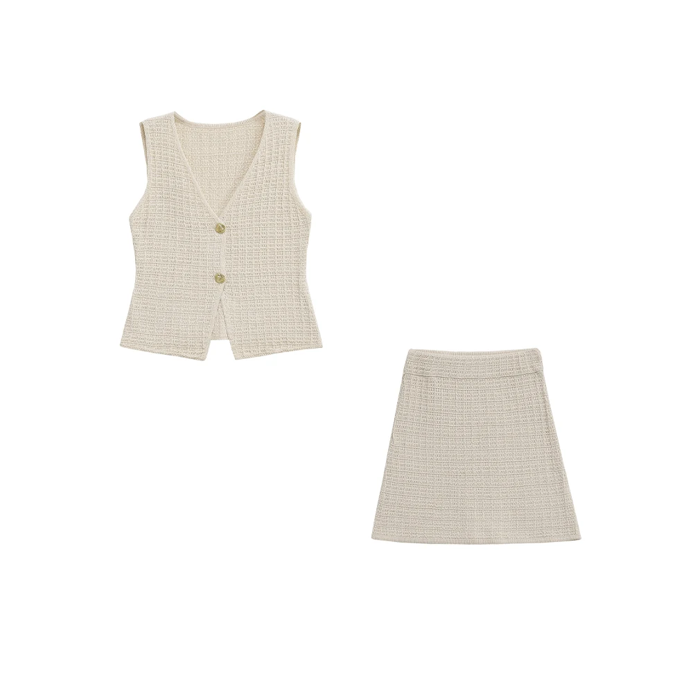 Women’s Elegant Knitted V-Neck Vest & Short Skirt