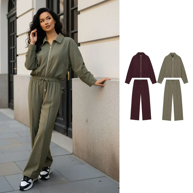 Women’s Fluffy Pilot Jacket & Wide Leg Pants Set