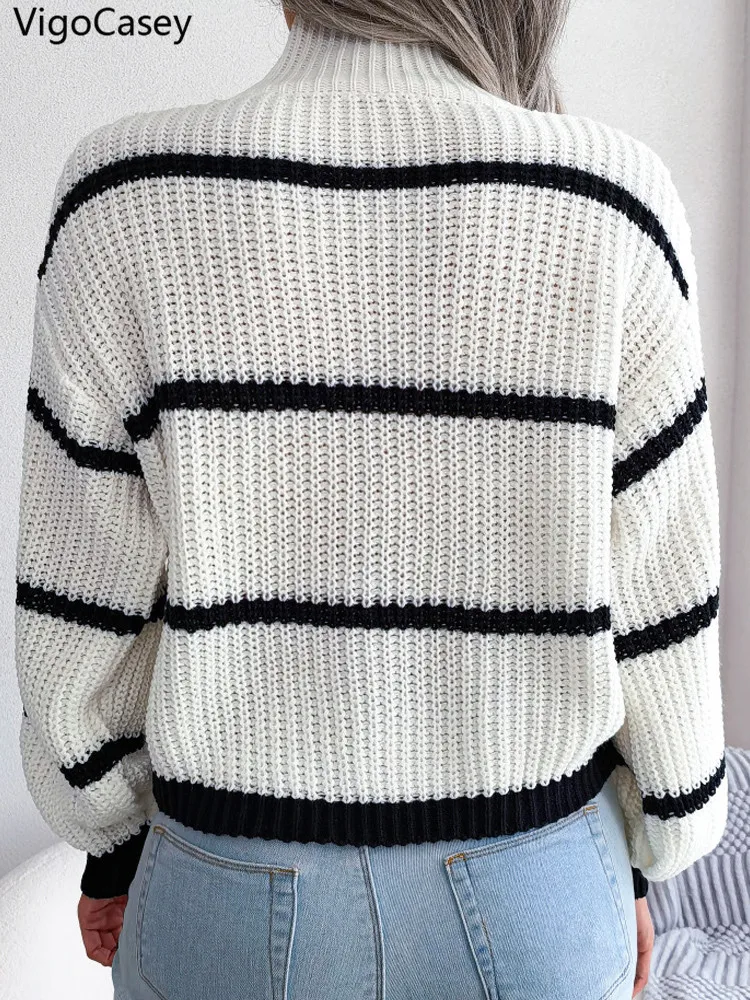 Be the first to review “Women’s High Collar Stripe Sweater”