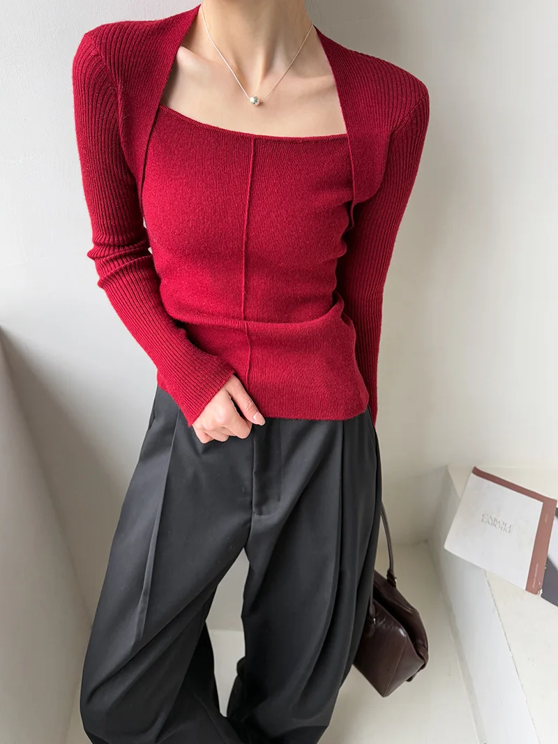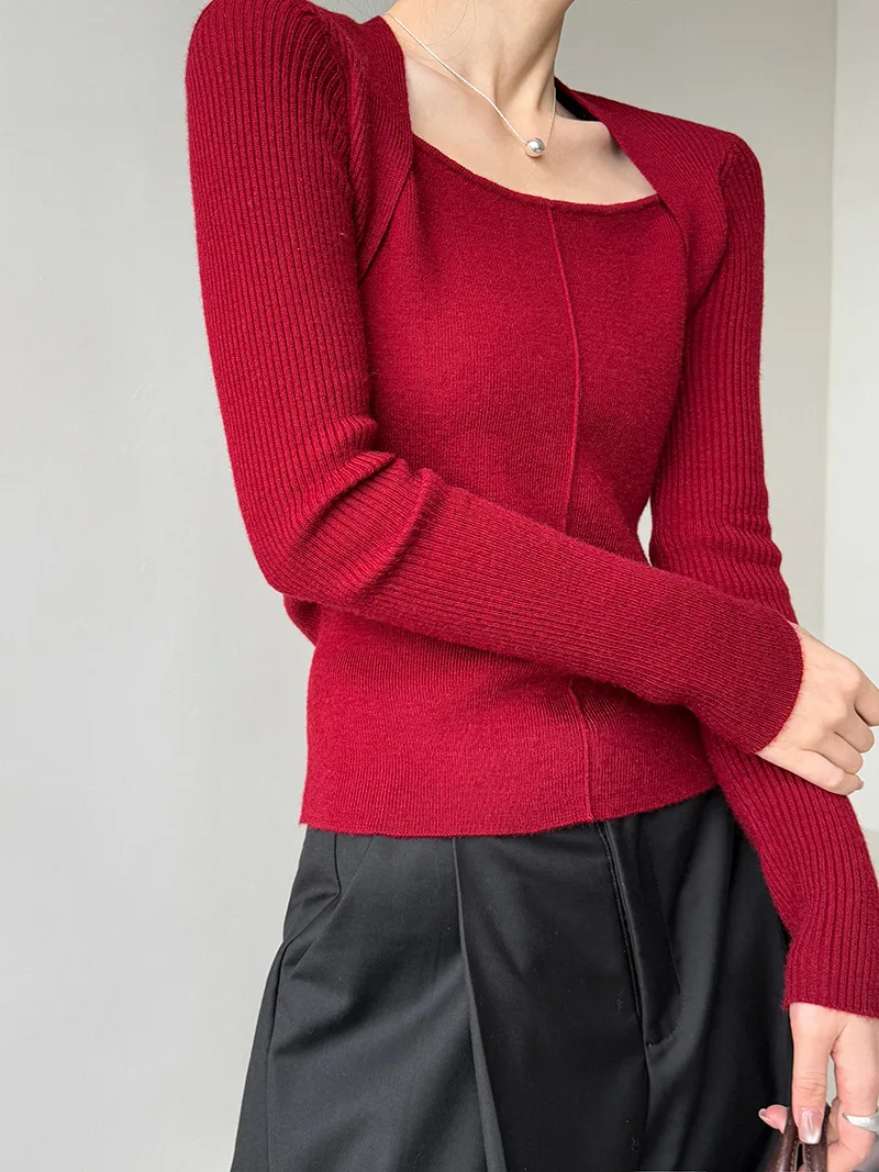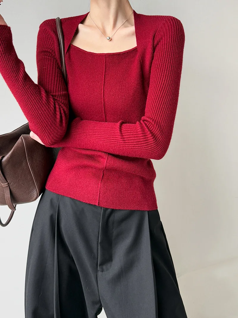 Womens Knit Square Neck Long Sleeve Blouse