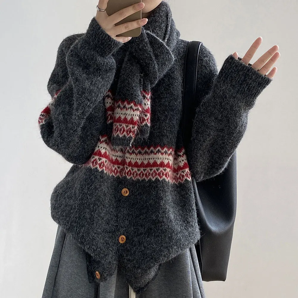 Women’s Knit Sweater with Scarf Cape