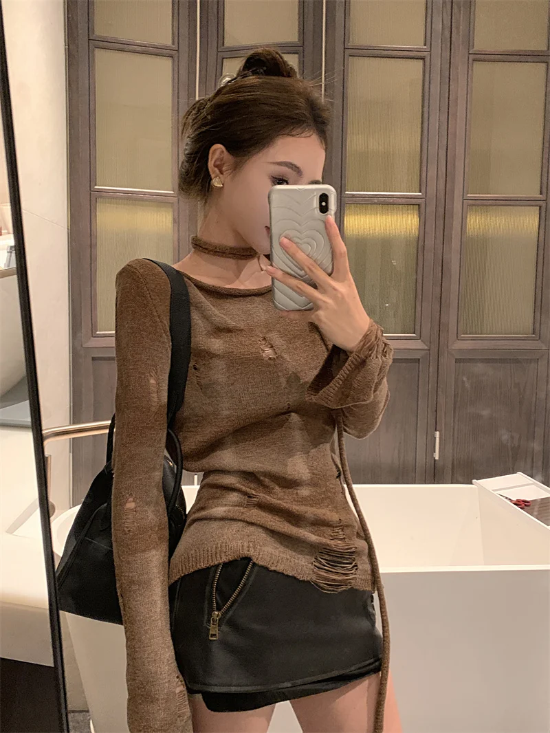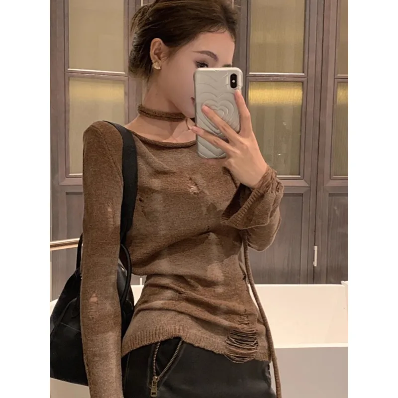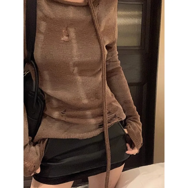 Women’s Knitted Hollow Out T Shirt Retro Lazy Style Sweater