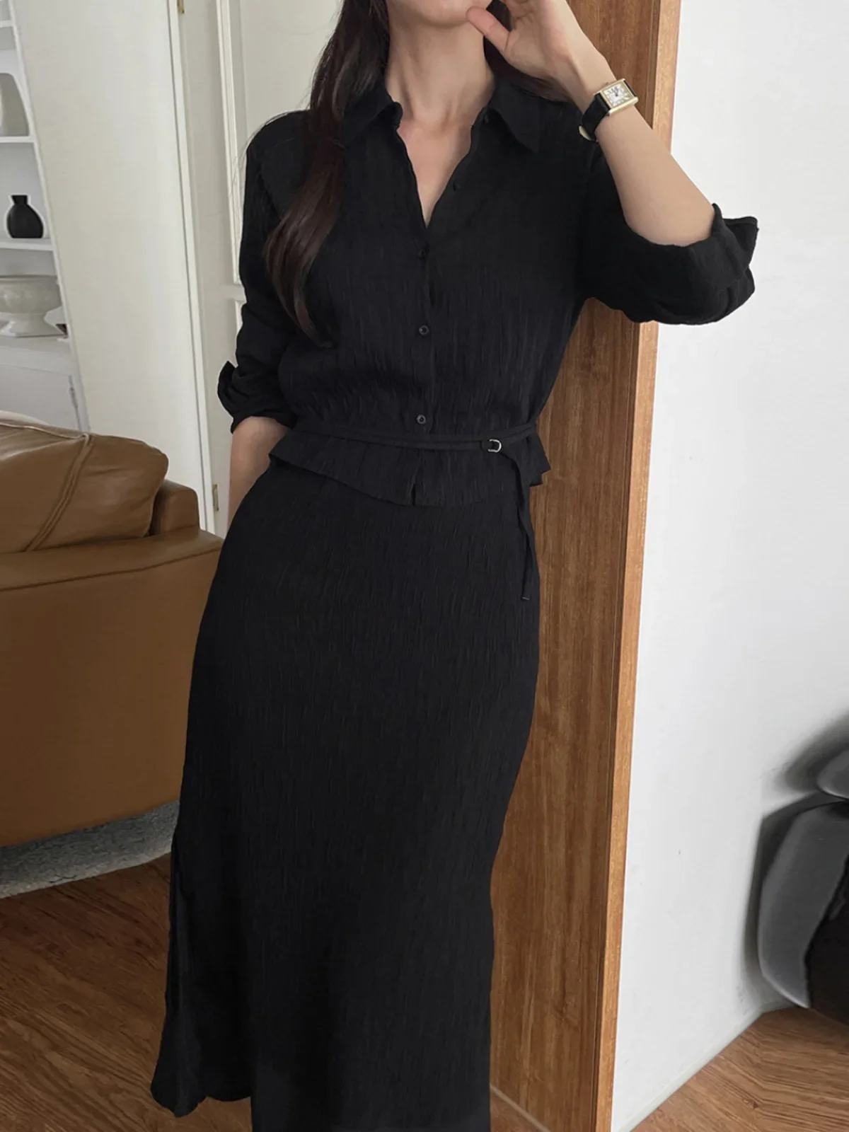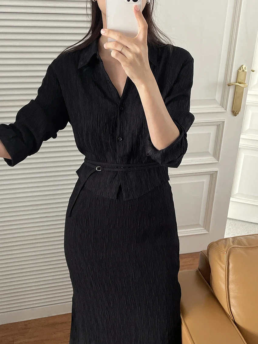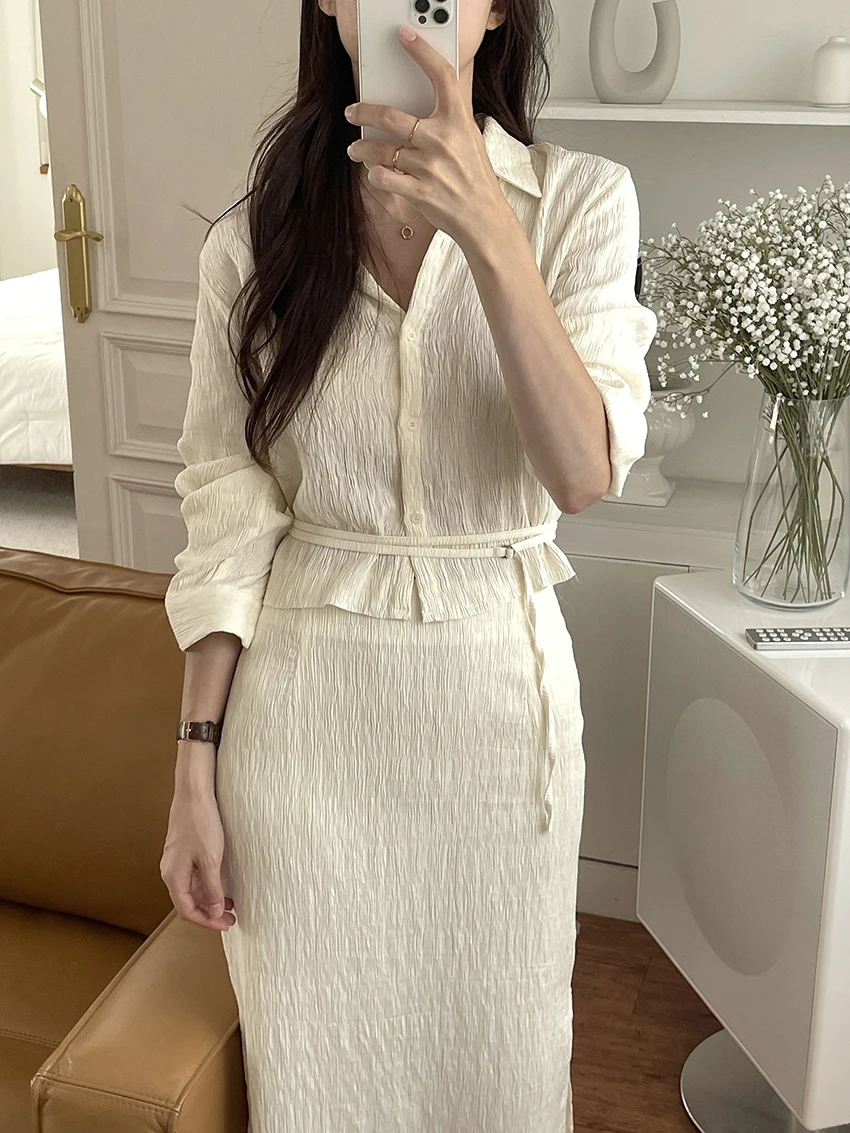 Women’s Korean Style Autumn Set Long Sleeve Top and High Waist Skirt Two-Piece Outfit