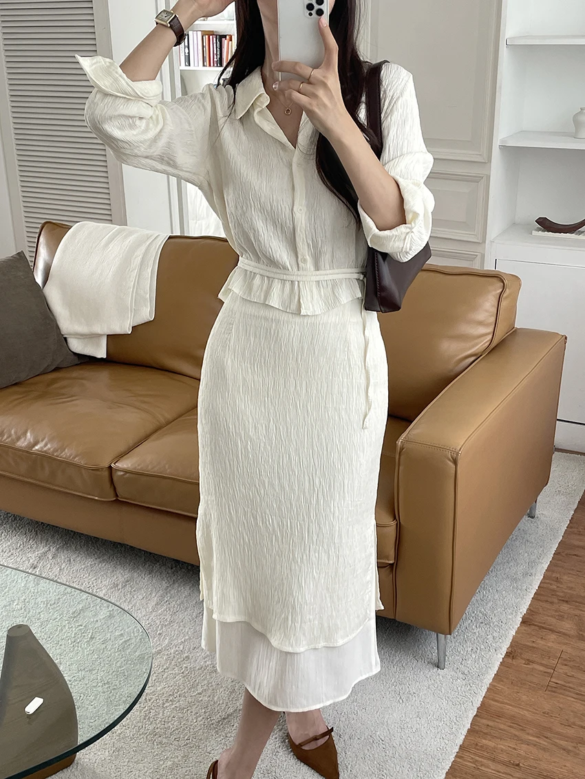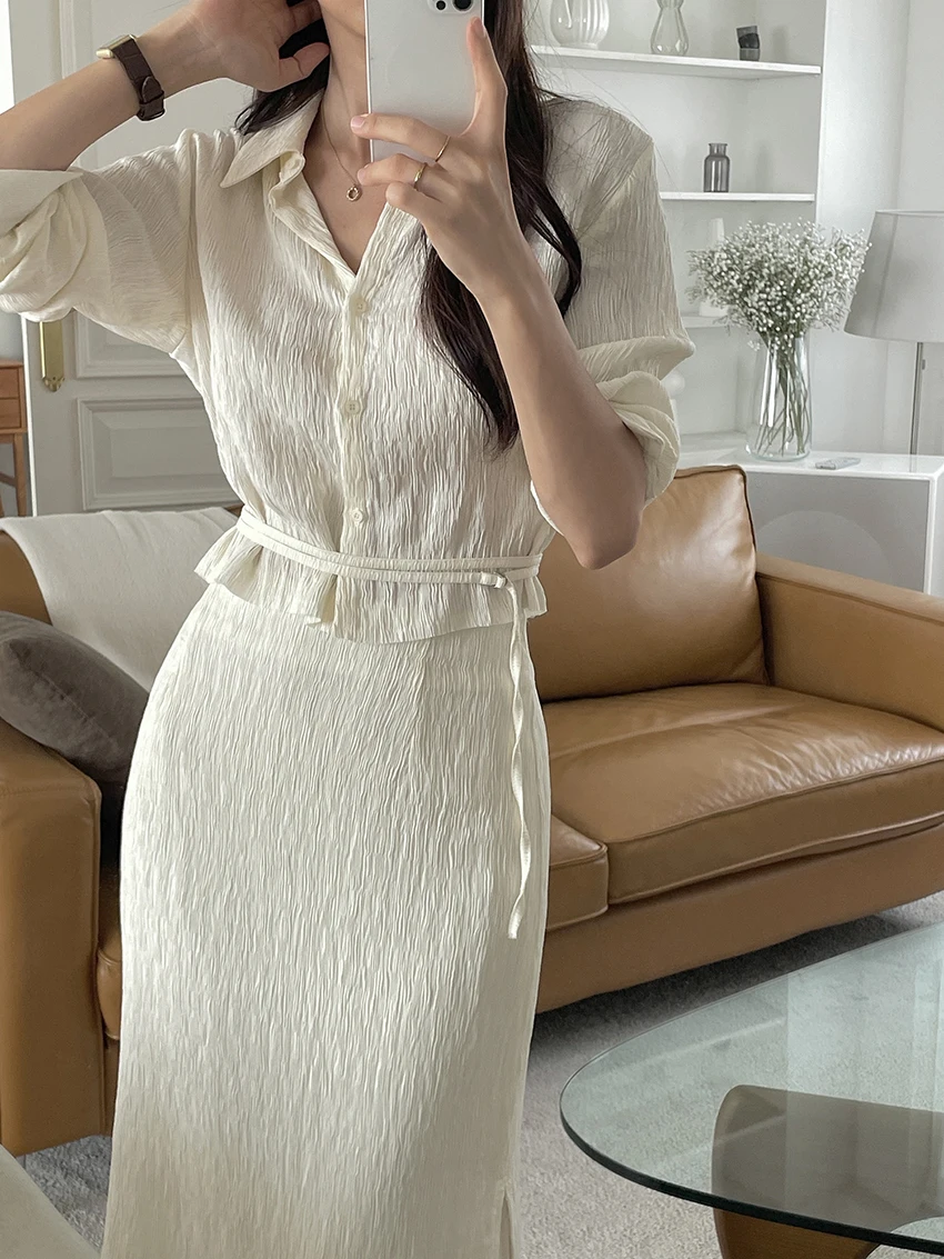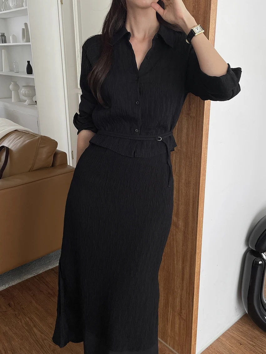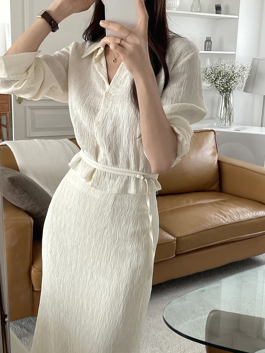 Women’s Korean Style Autumn Set Long Sleeve Top and High Waist Skirt Two-Piece Outfit