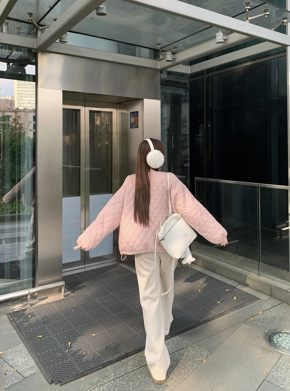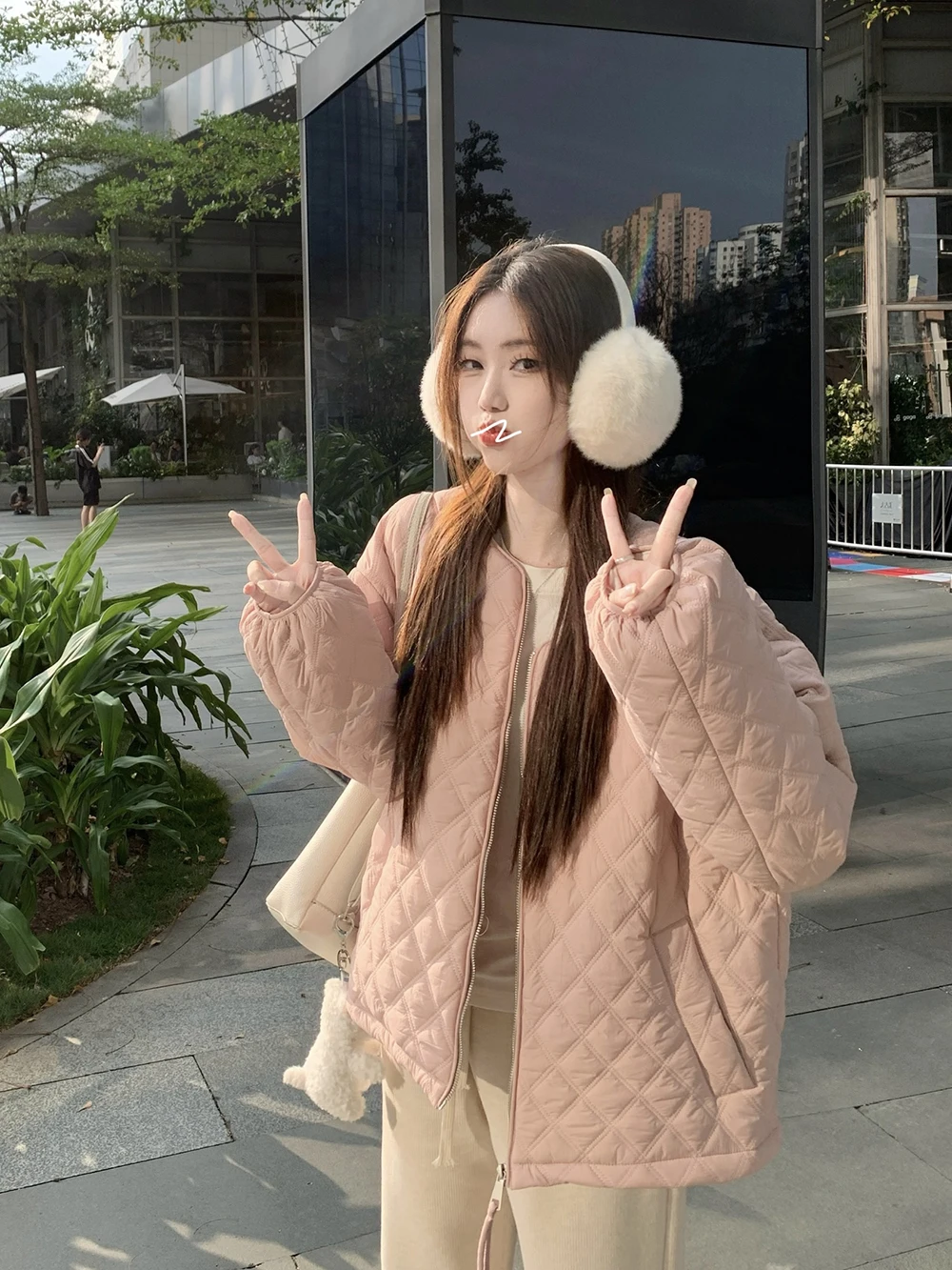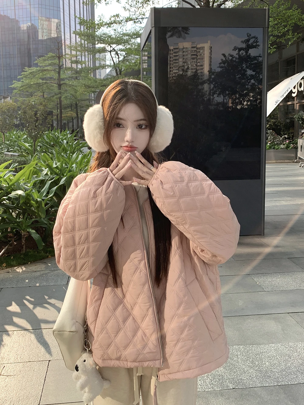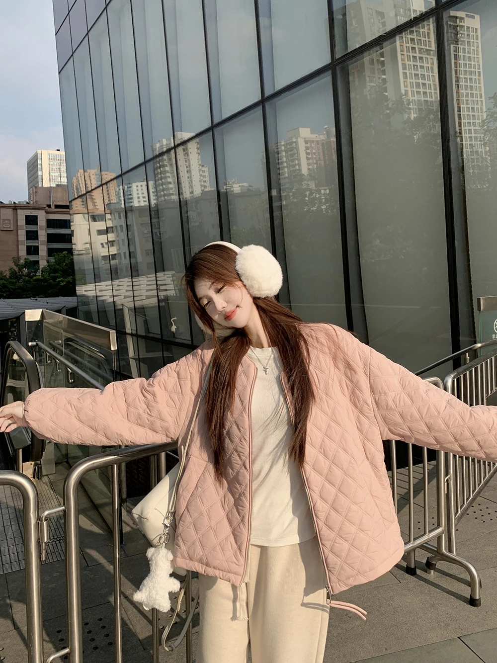 Women’s Korean Style Lozenge Pattern Padded Winter Jacket