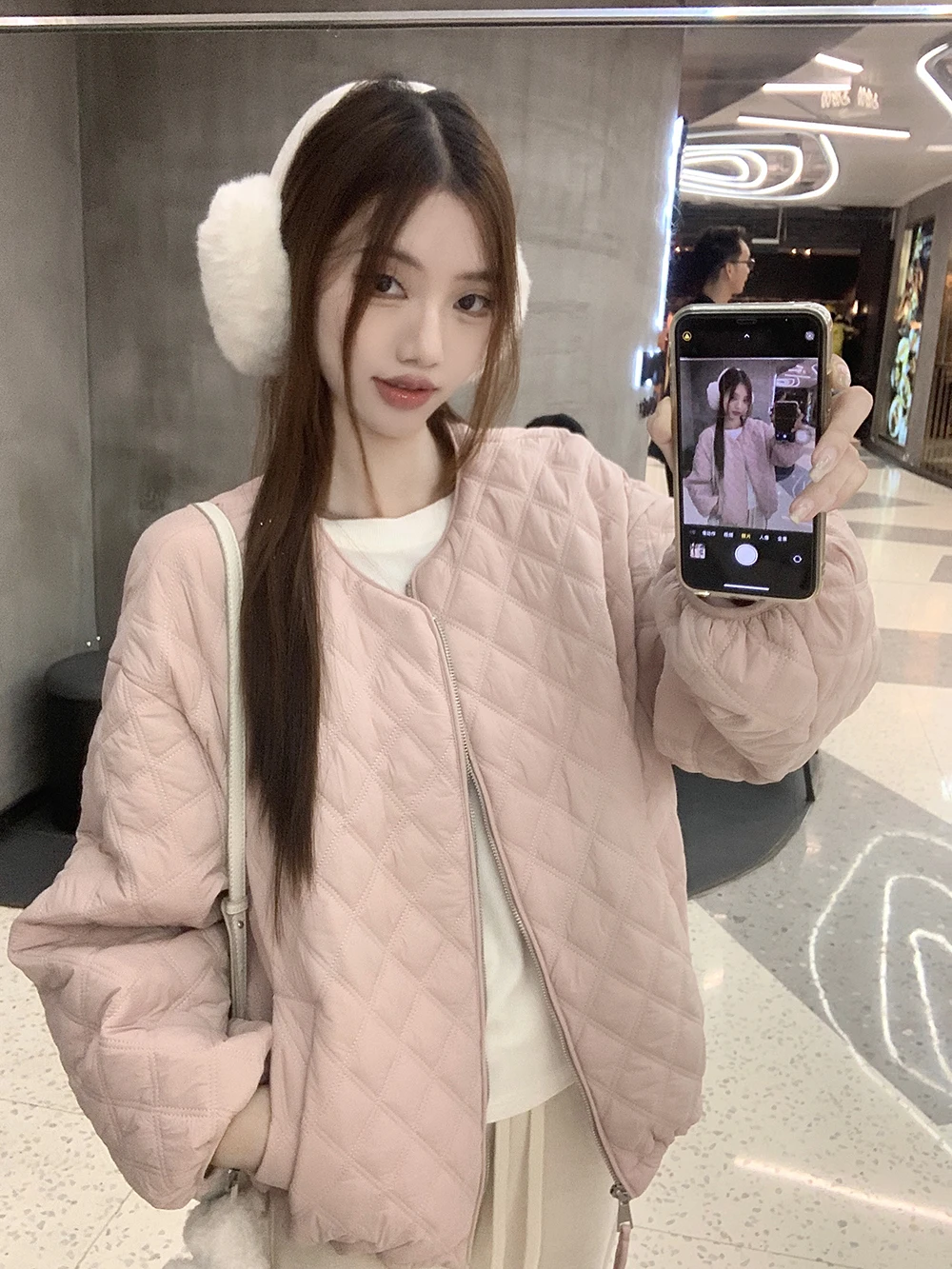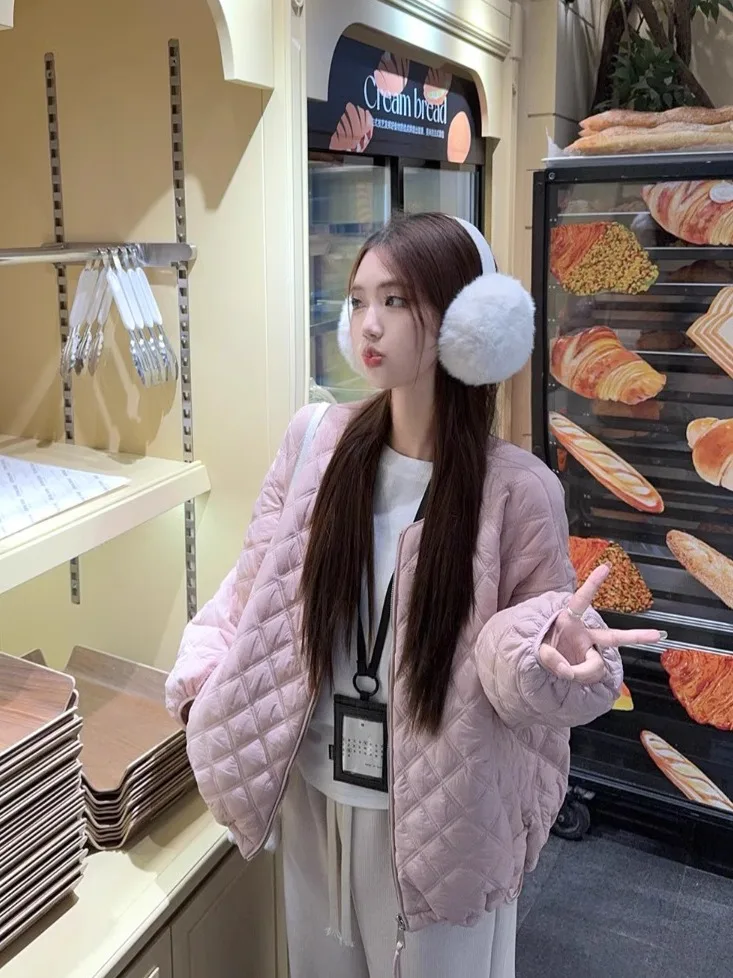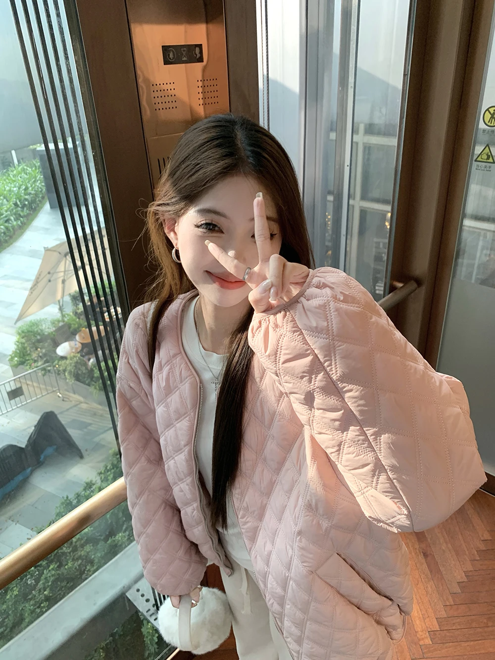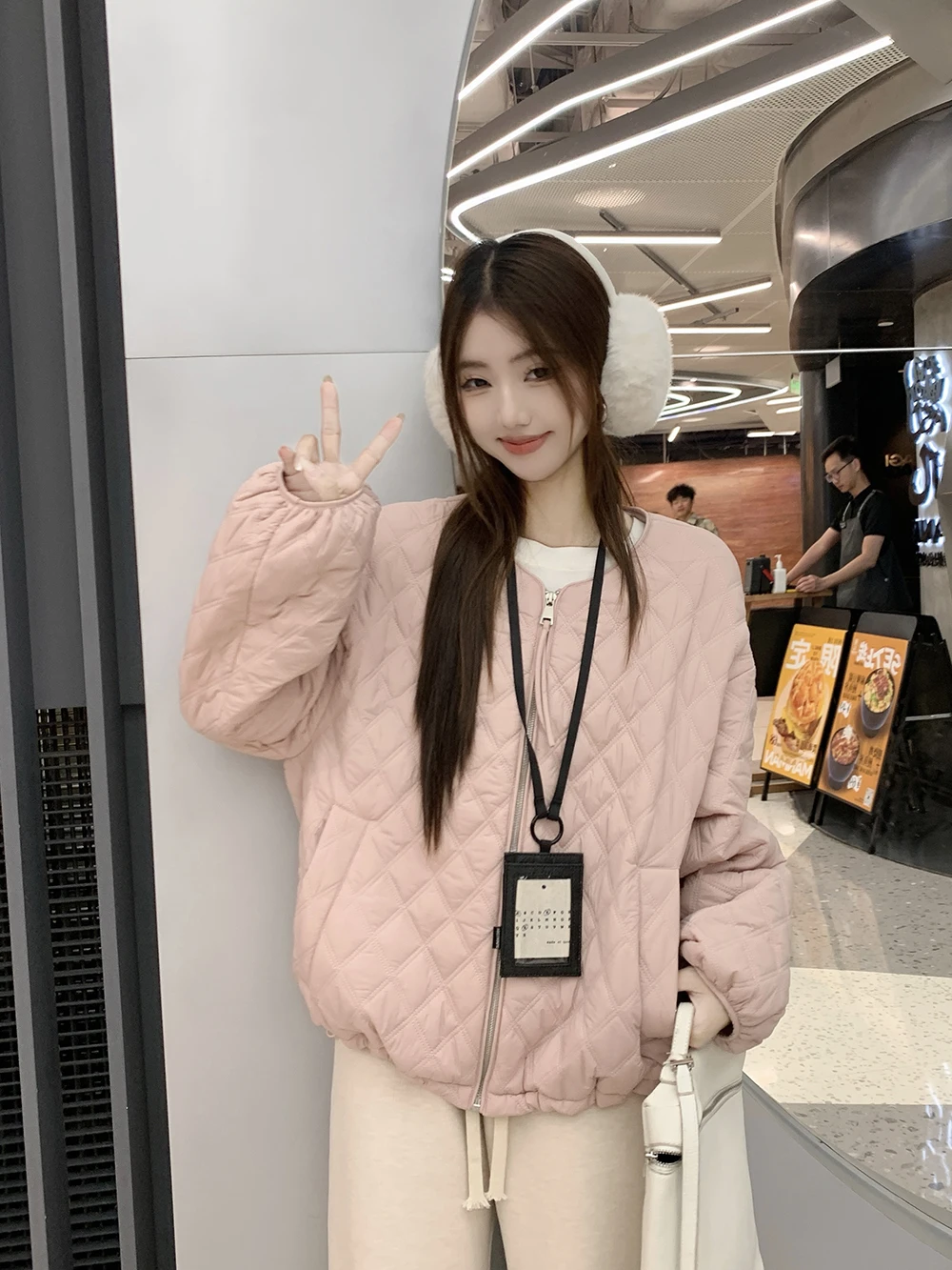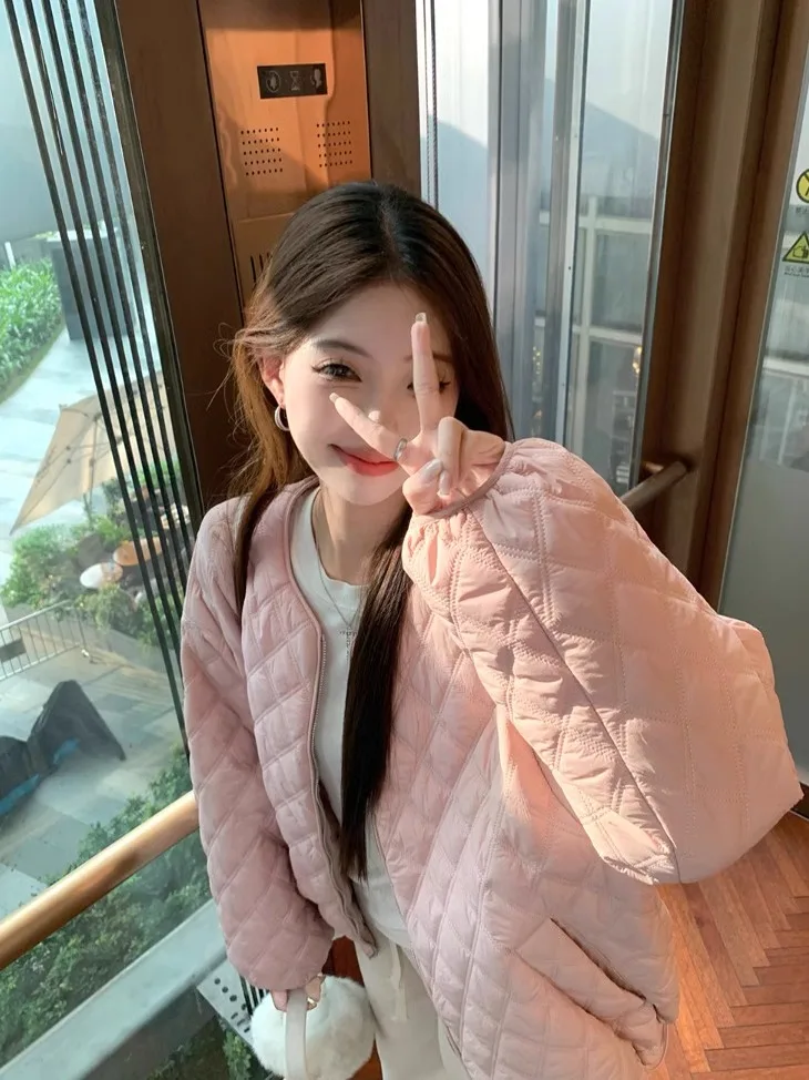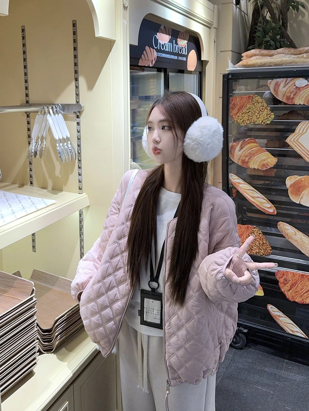 Women’s Korean Style Lozenge Pattern Padded Winter Jacket