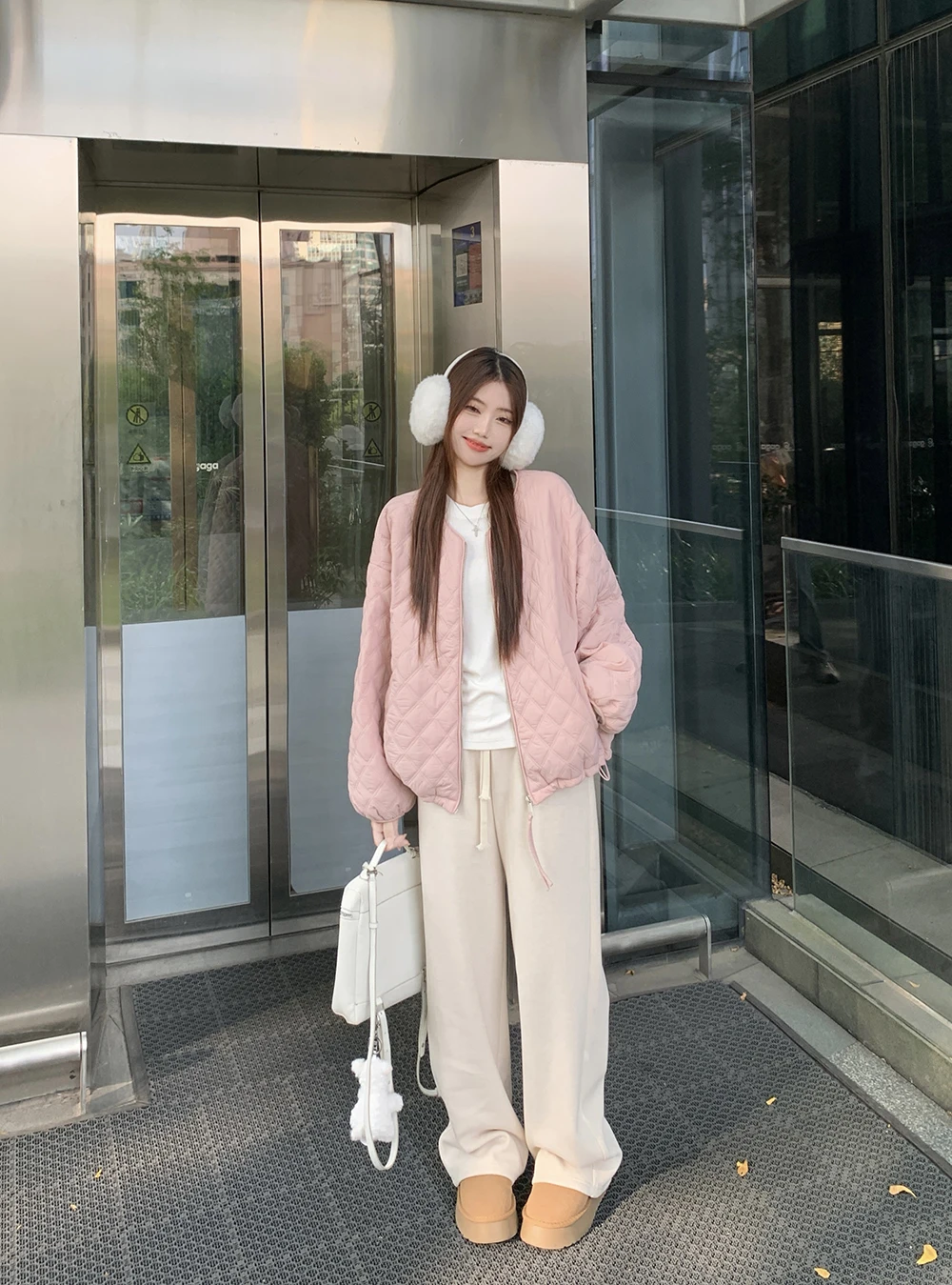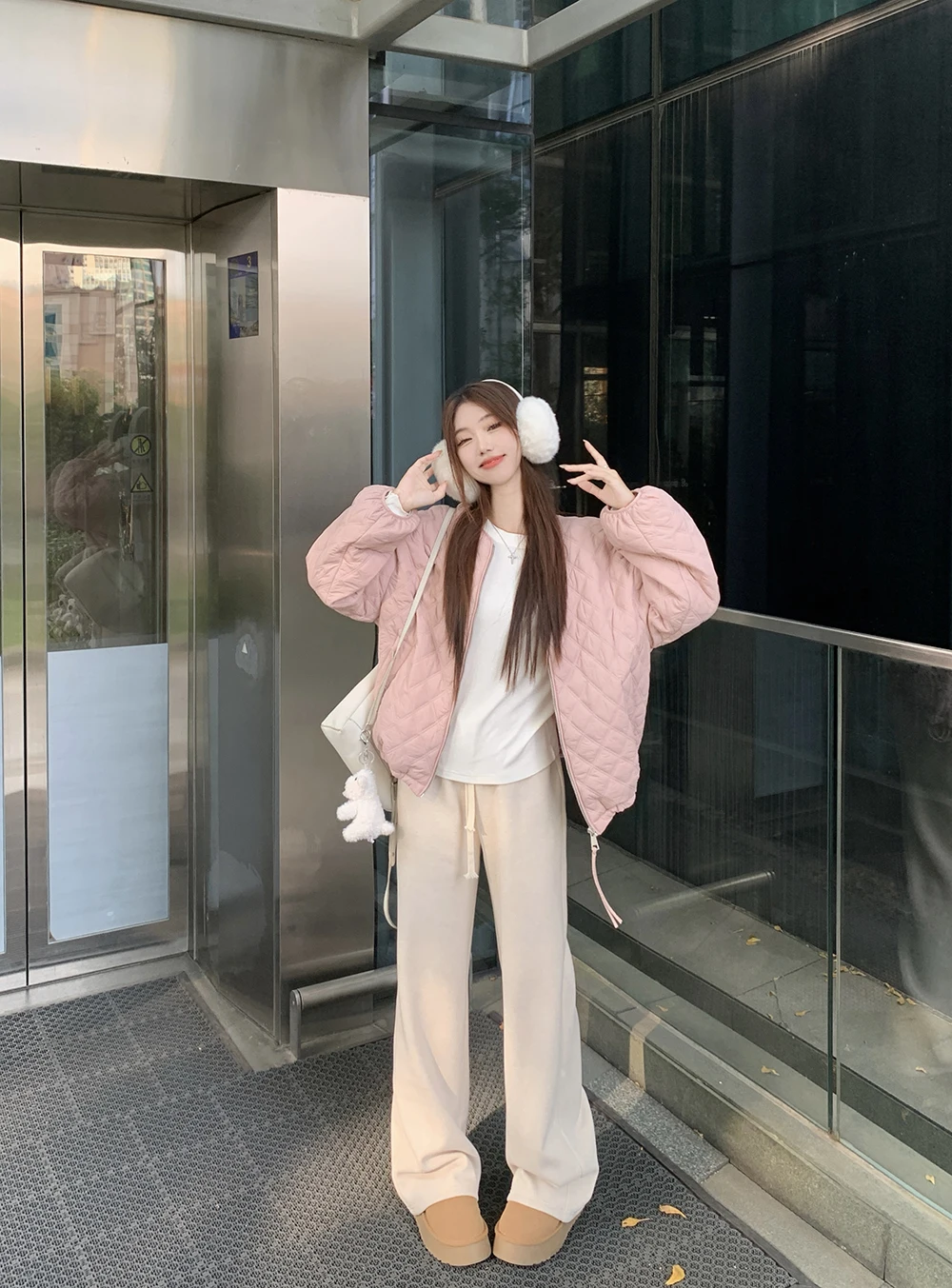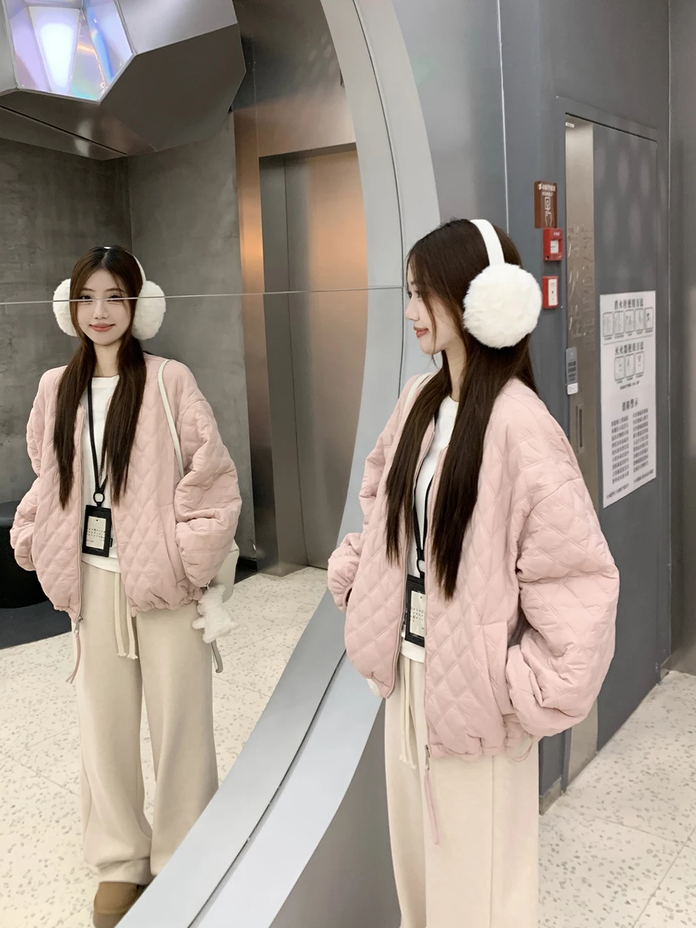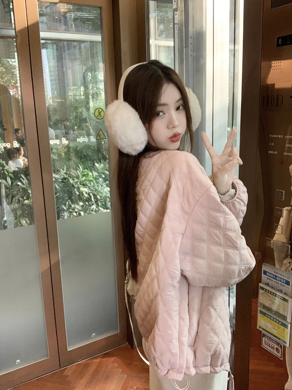 Women’s Korean Style Lozenge Pattern Padded Winter Jacket