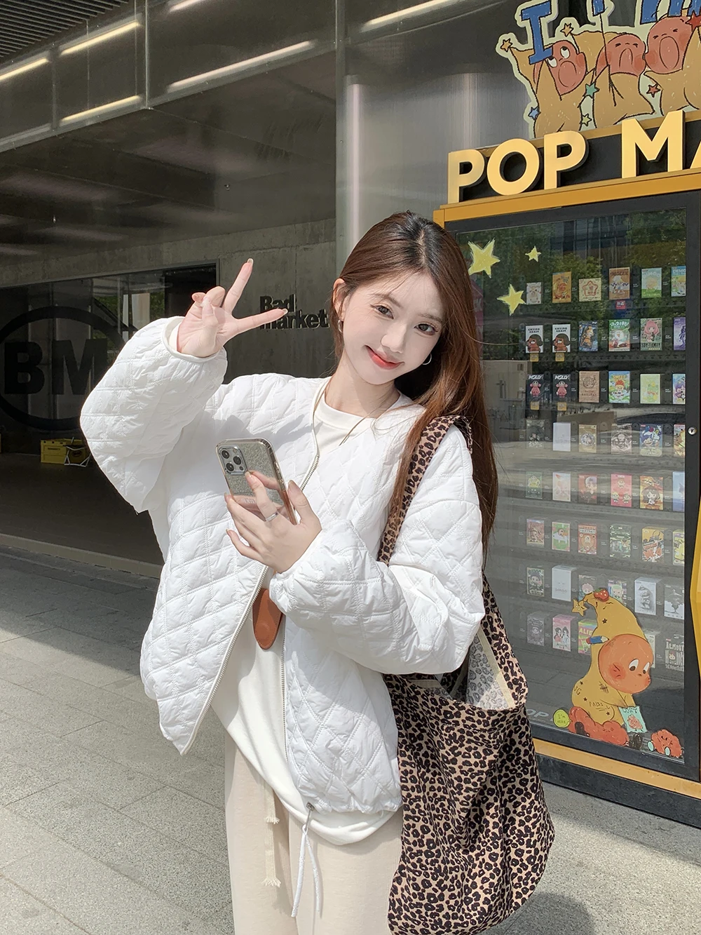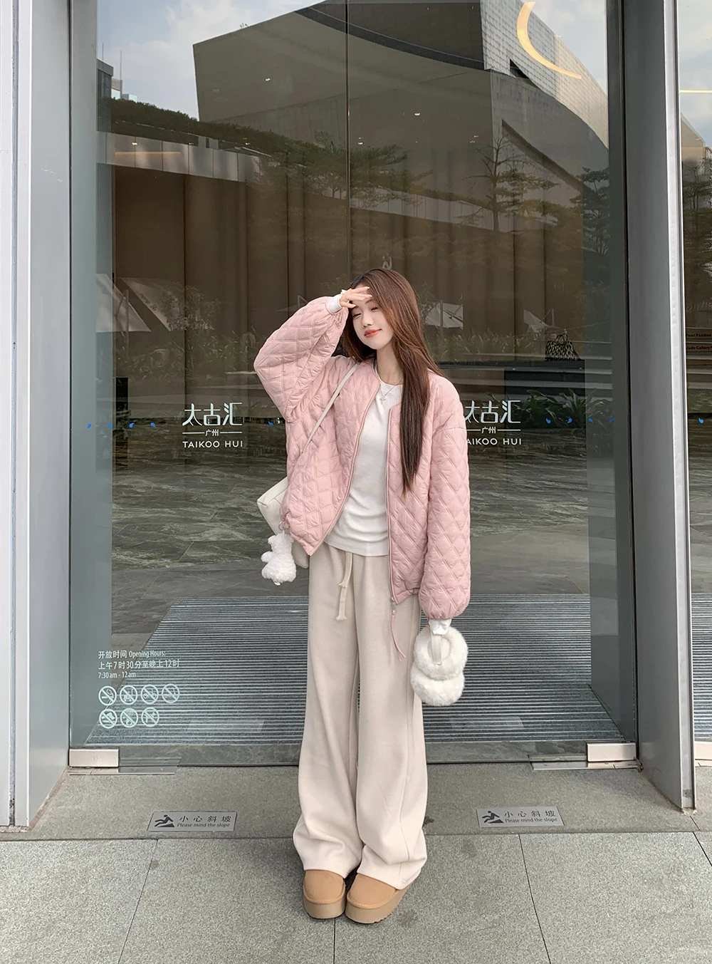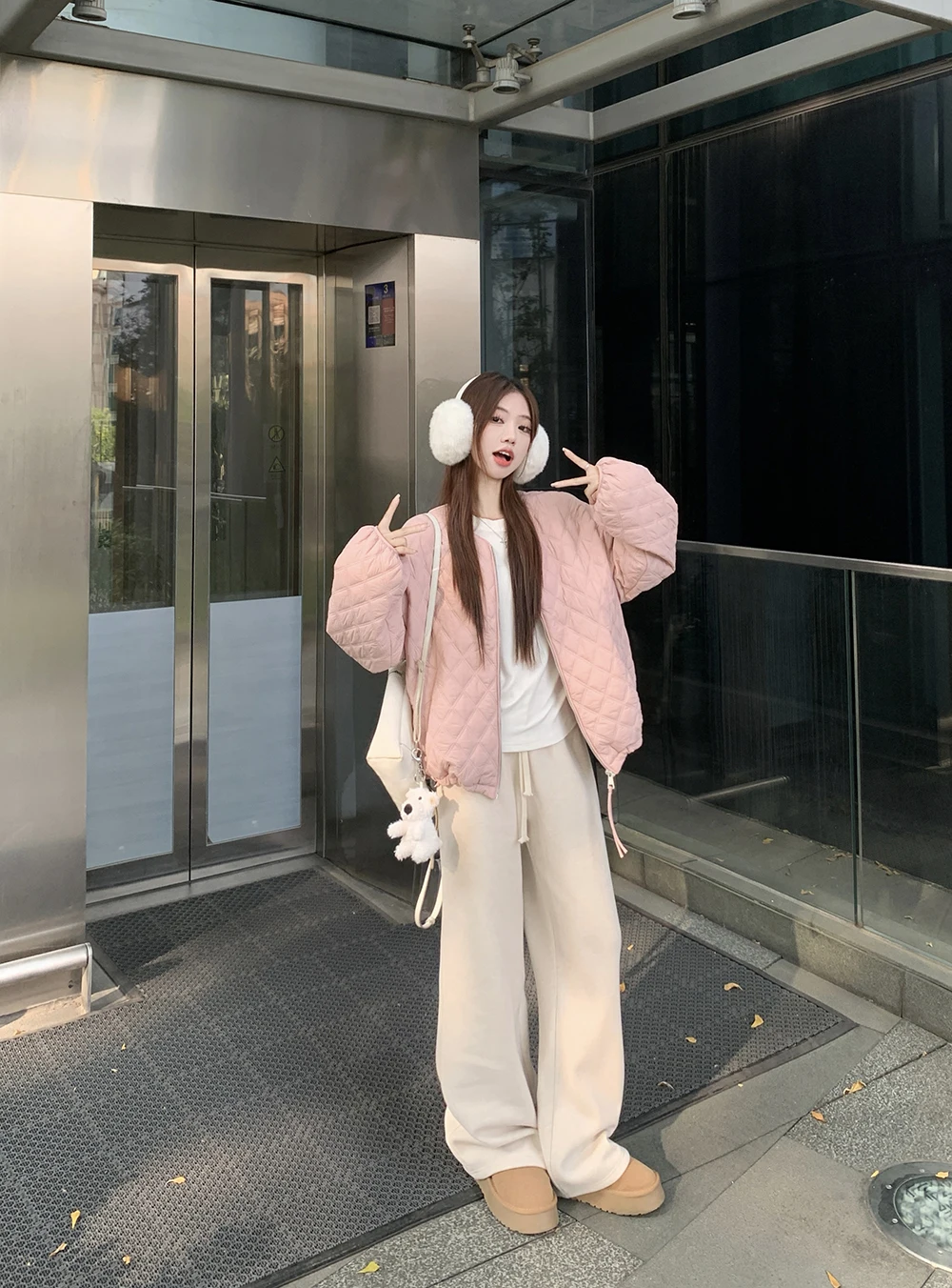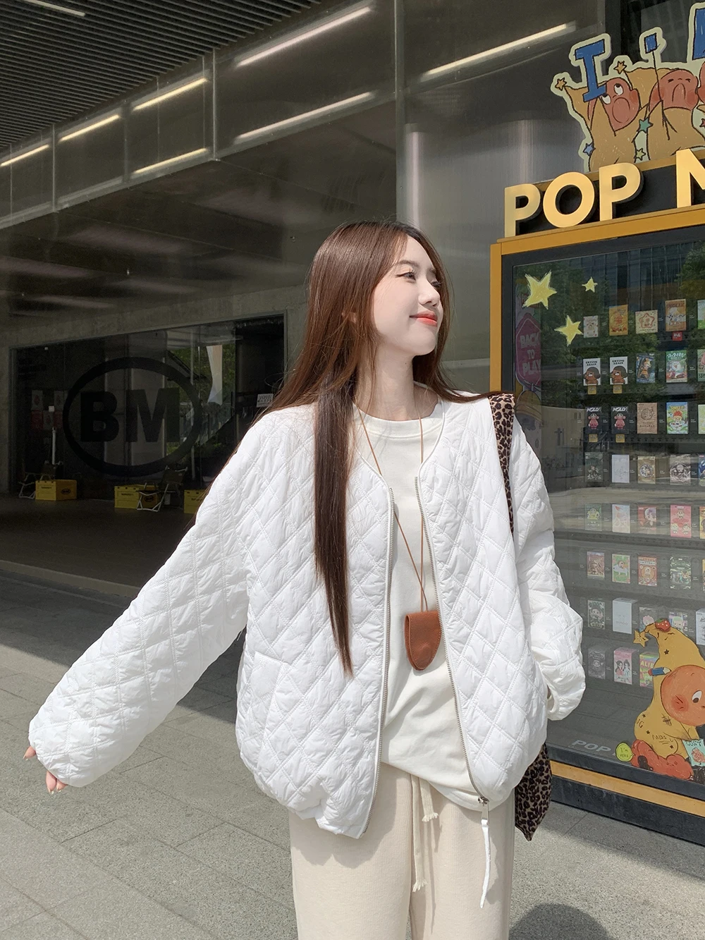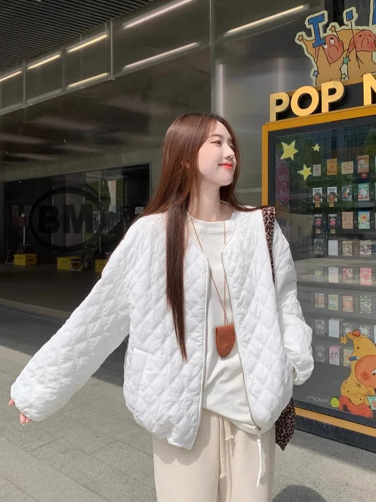 Women’s Korean Style Lozenge Pattern Padded Winter Jacket