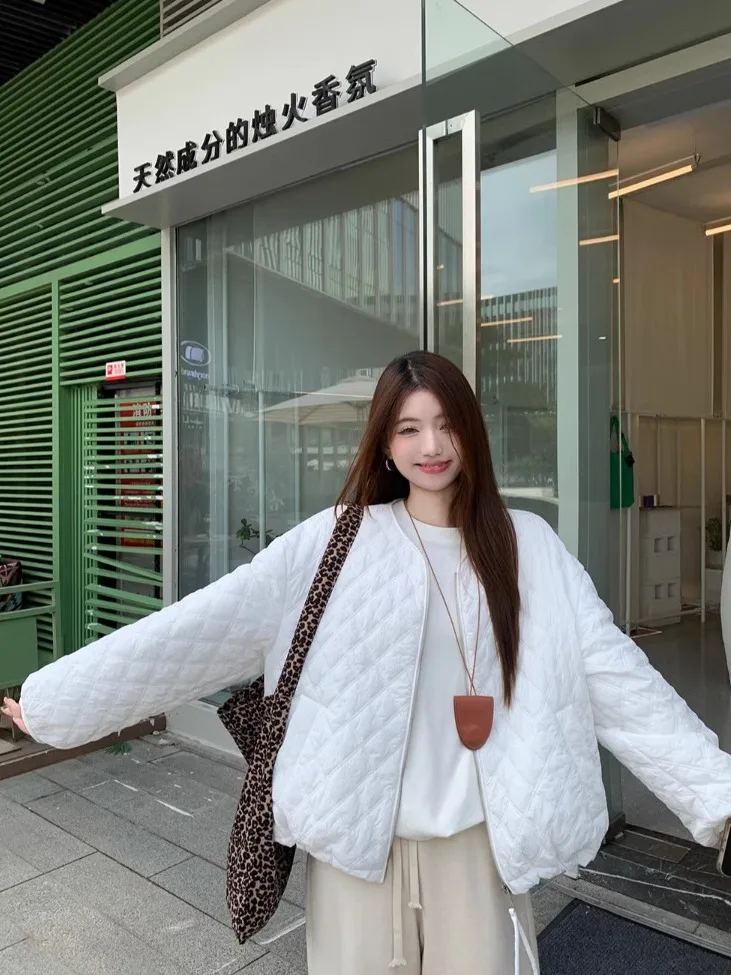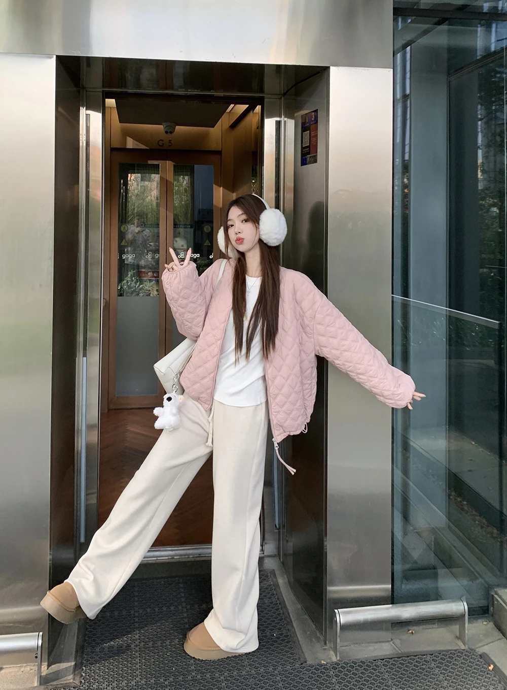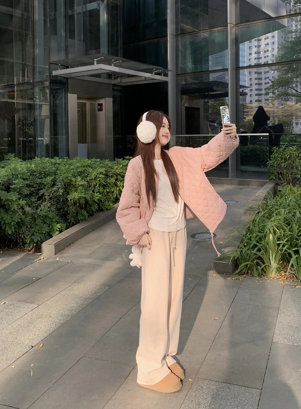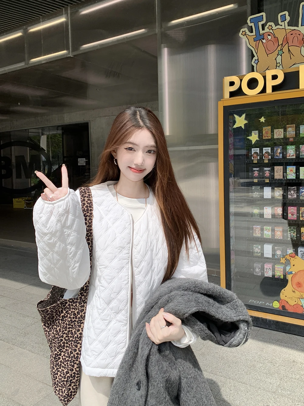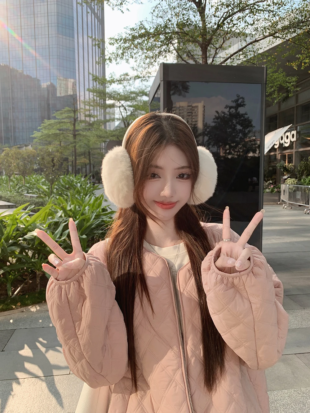 Women’s Korean Style Lozenge Pattern Padded Winter Jacket