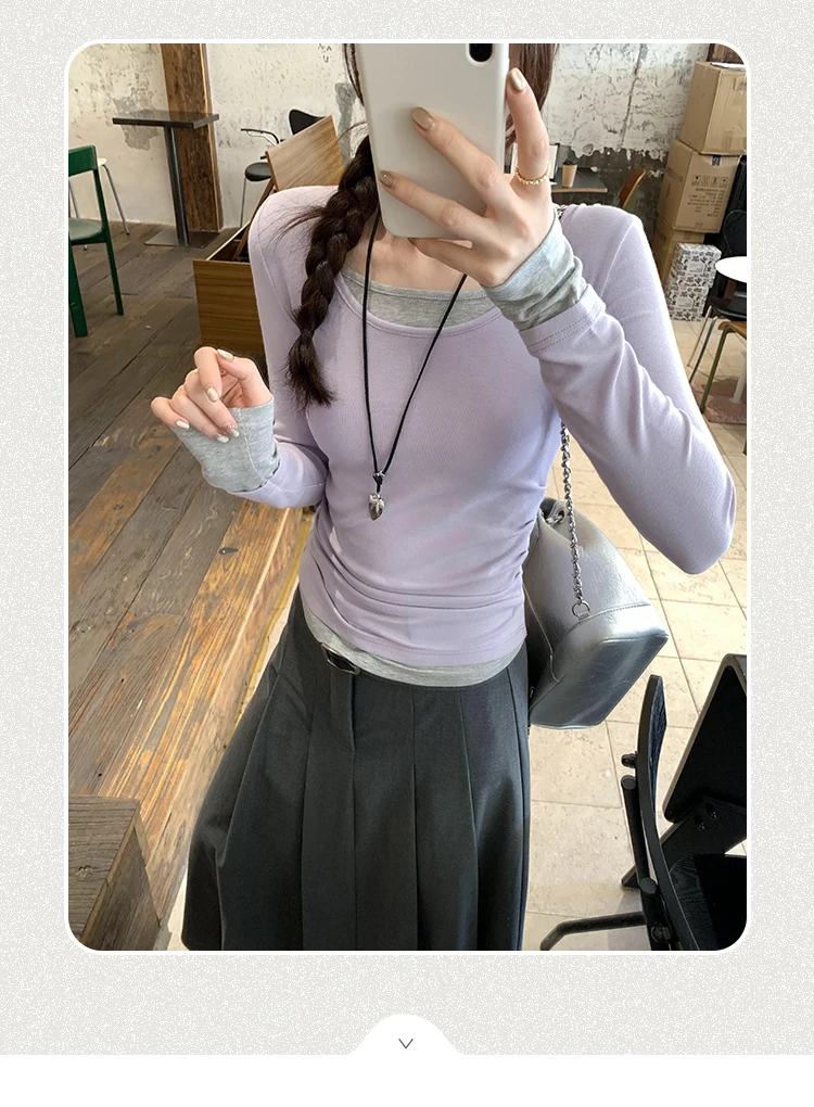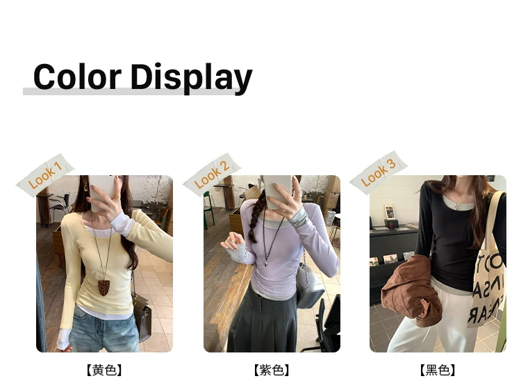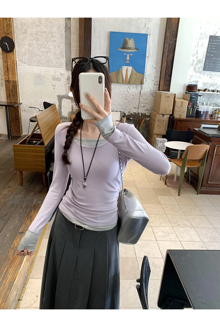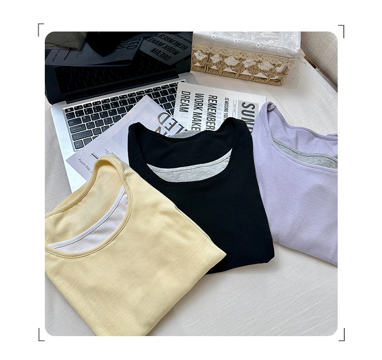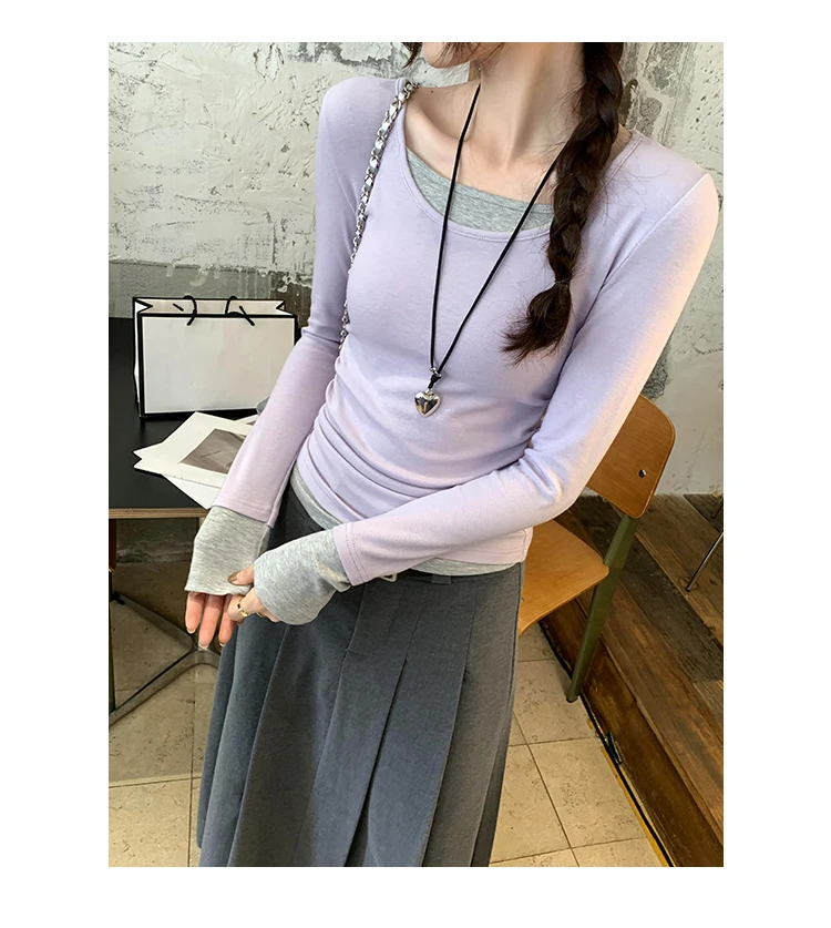 Women’s Korean Style O Neck Slim Fit Patchwork T-Shirt