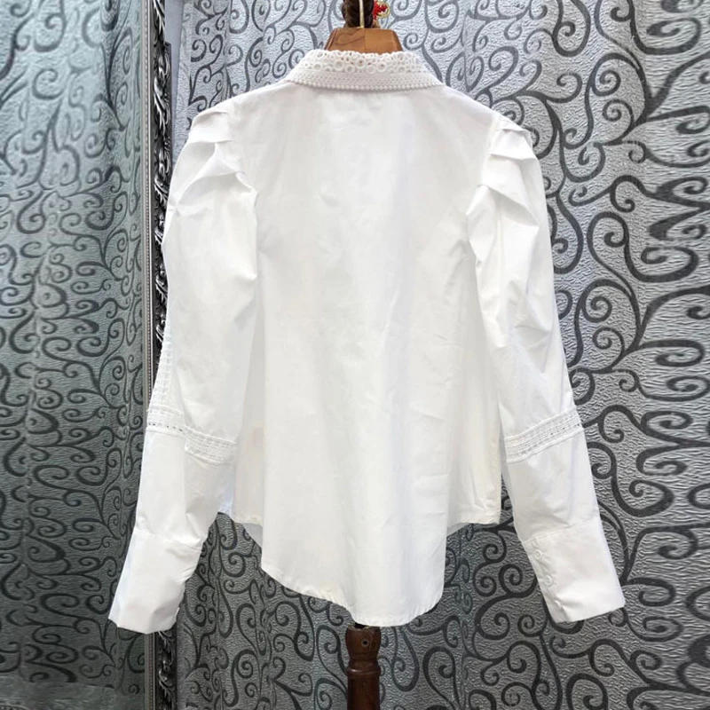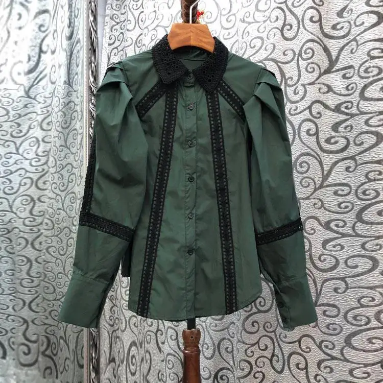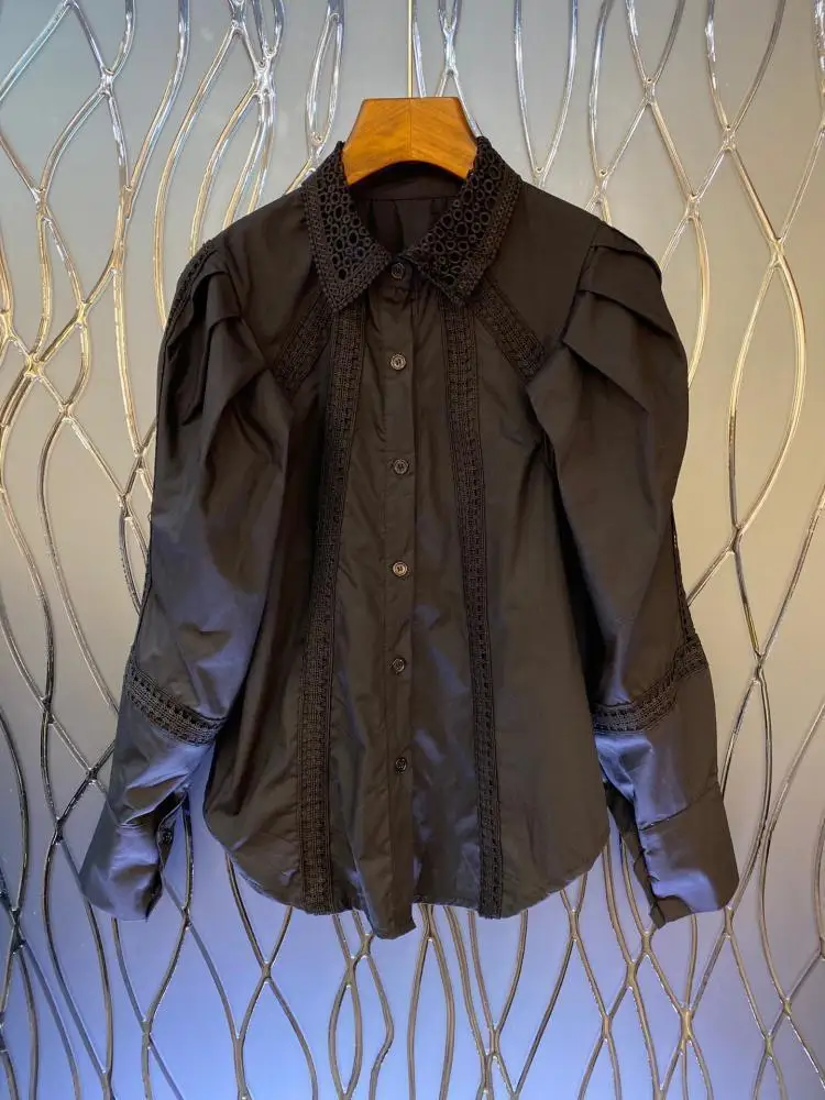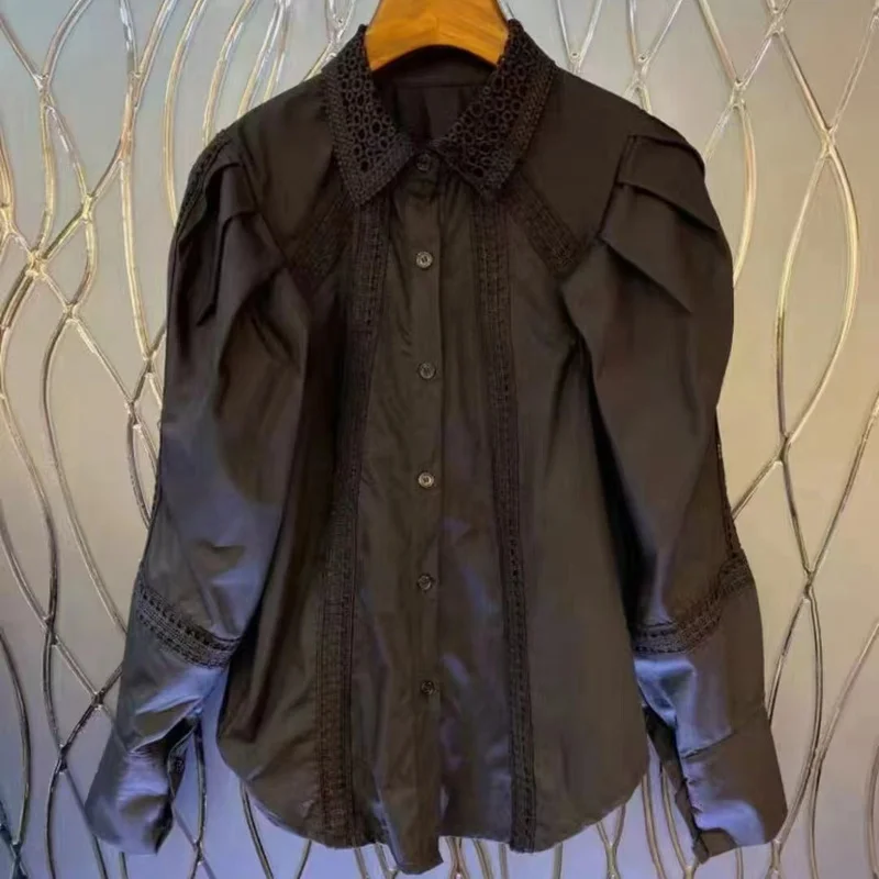 Women’s Lace Hollow Out Lantern Sleeve Blouse