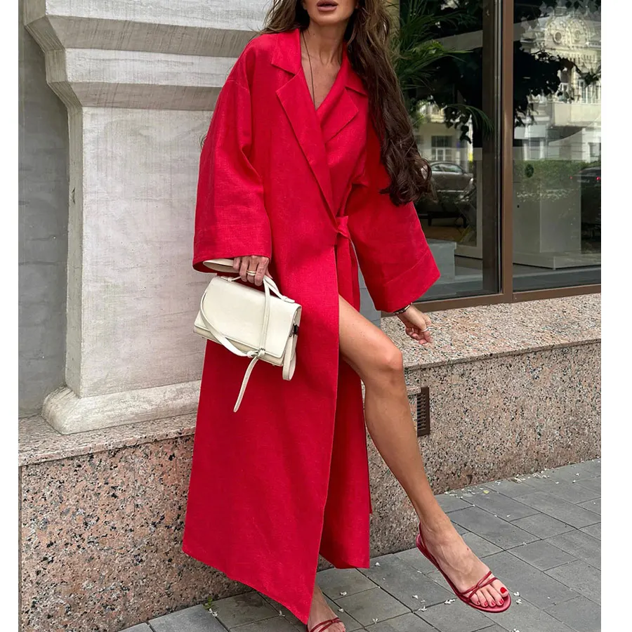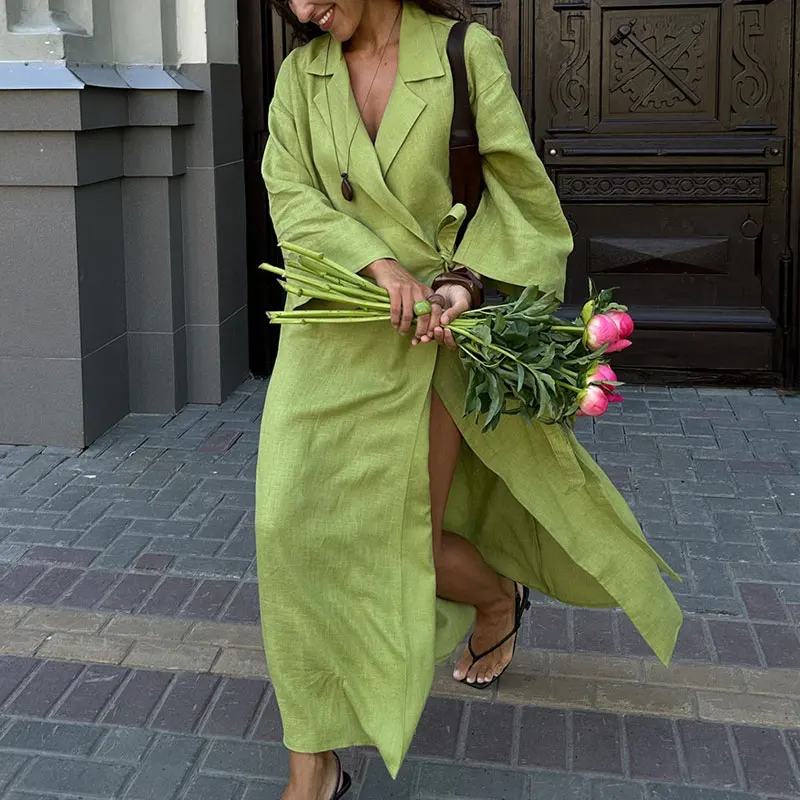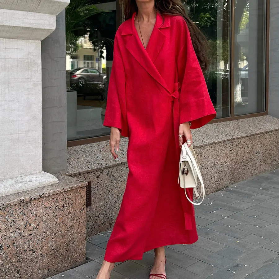 Women’s Lace Up Long Sleeve Maxi Dress