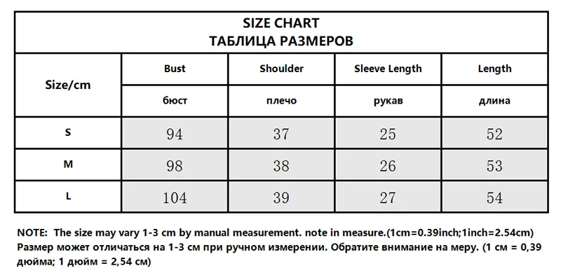 US Size Bust (cm) Shoulder (cm) Sleeve Length (cm)