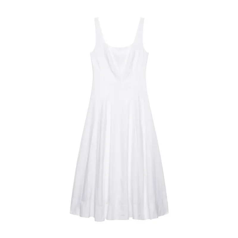 Women’s Linen Blend Square Neck Strap Midi Dress