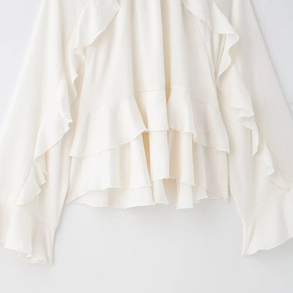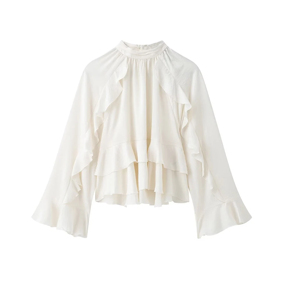 Women’s Long Sleeve Ruffled Stand Collar Elegant Blouse