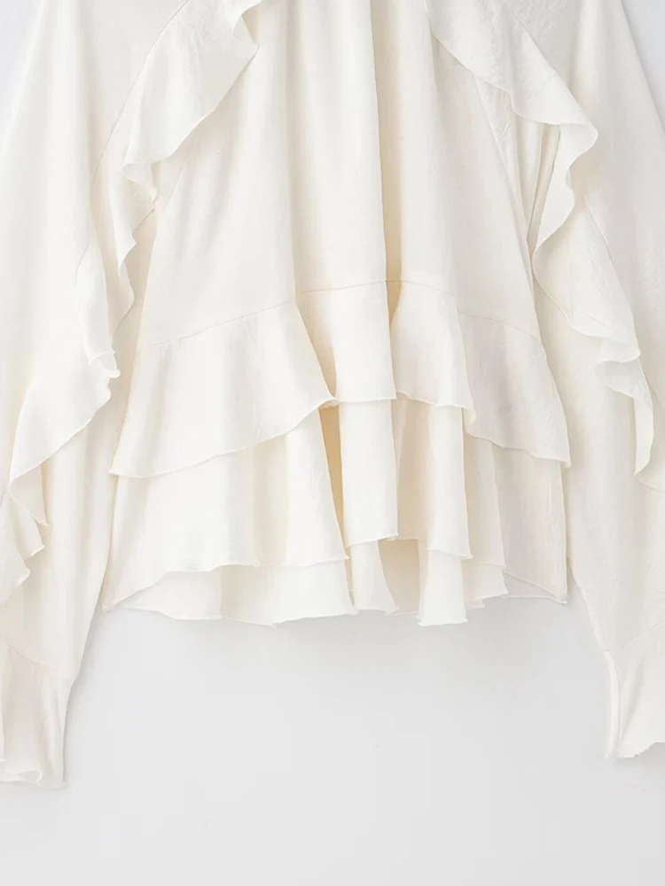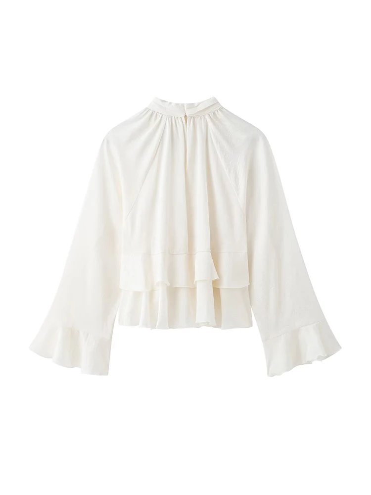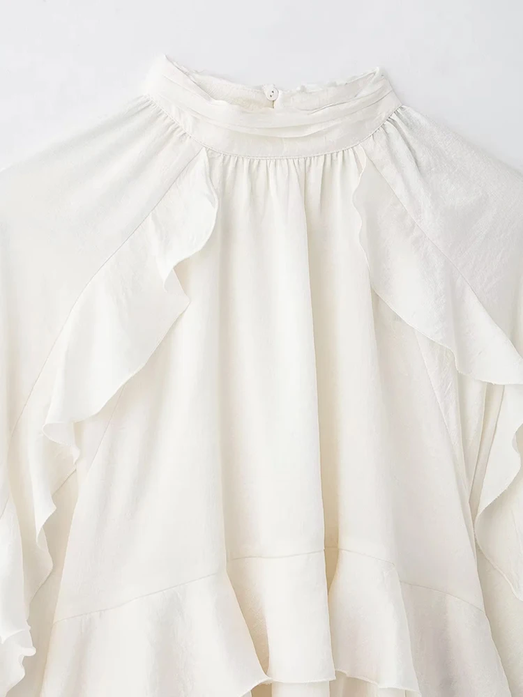 Women’s Long Sleeve Ruffled Stand Collar Elegant Blouse