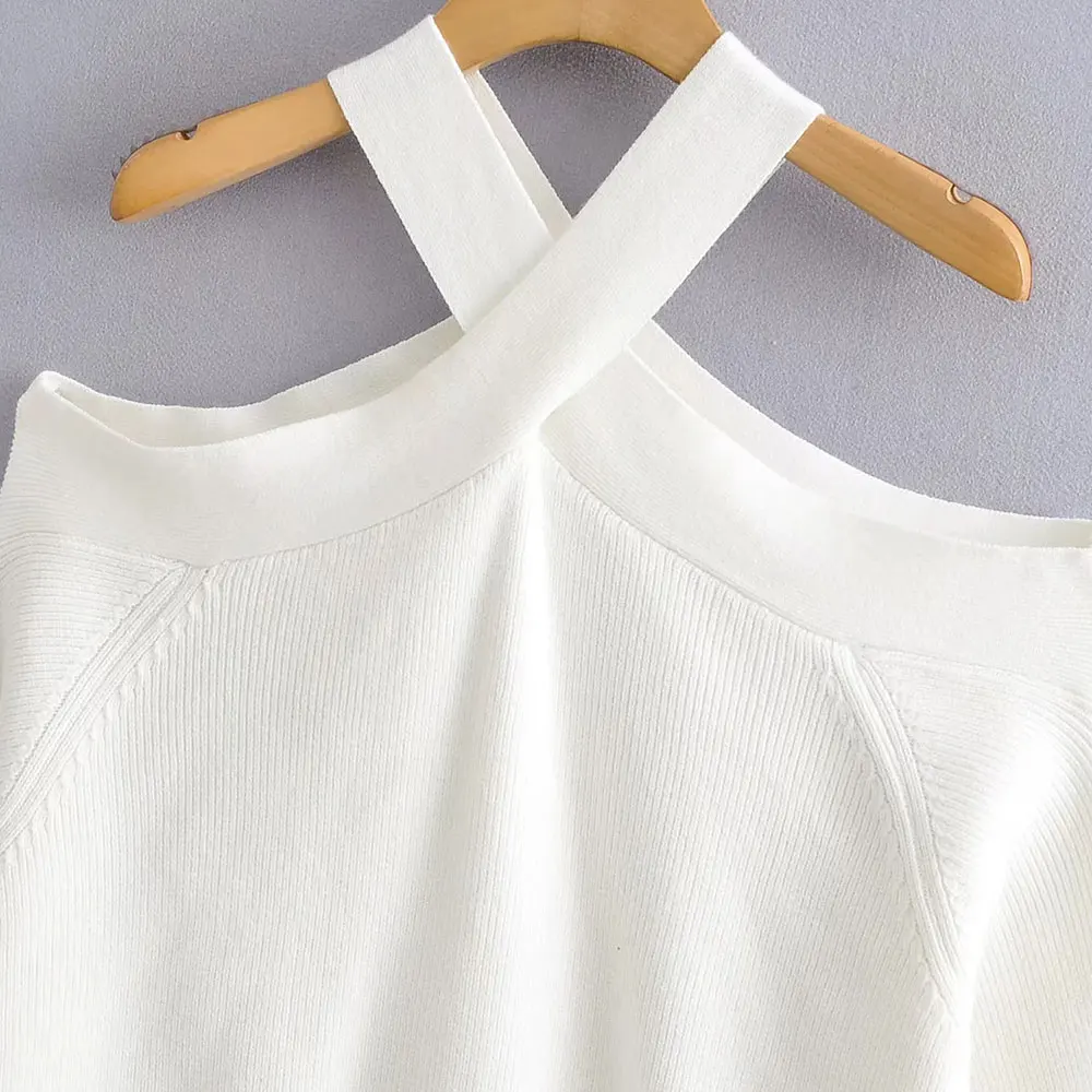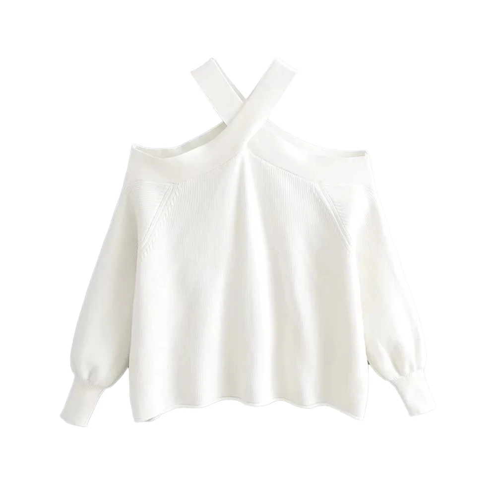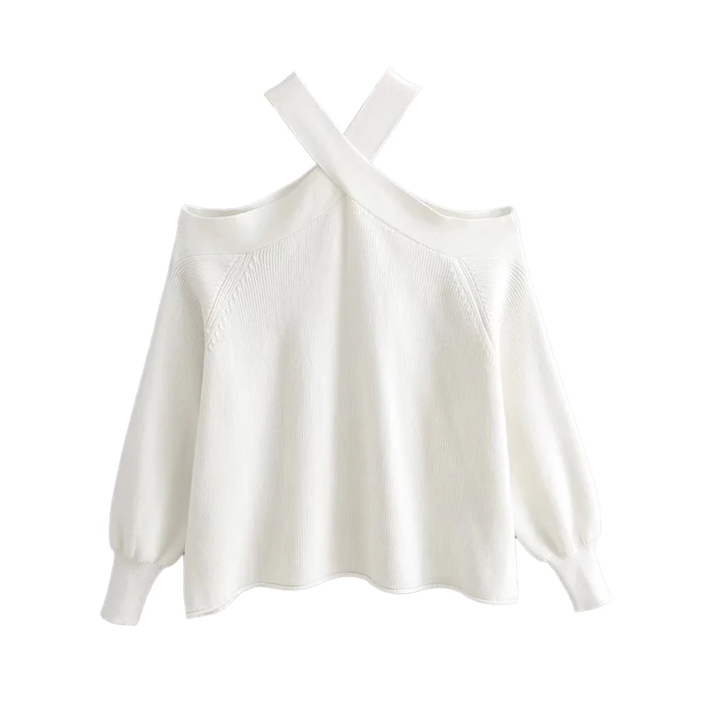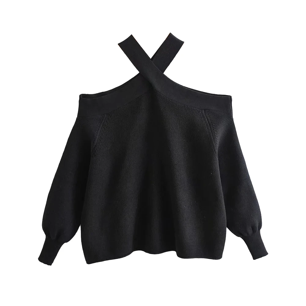 Women’s Loose Knit Halterneck Off-Shoulder Sweater