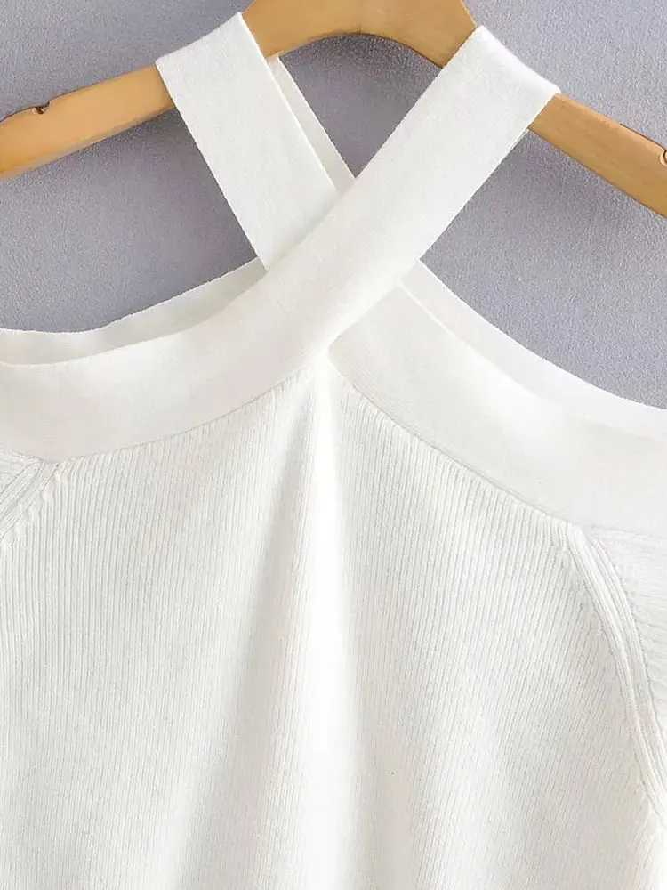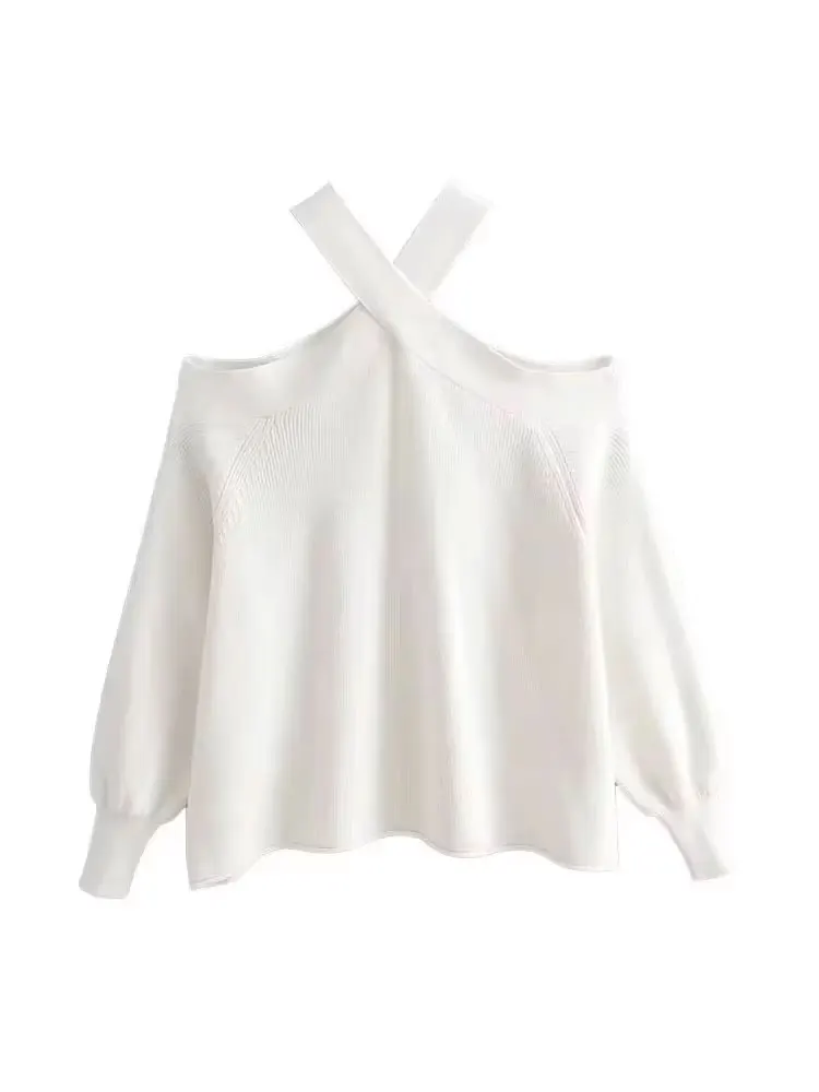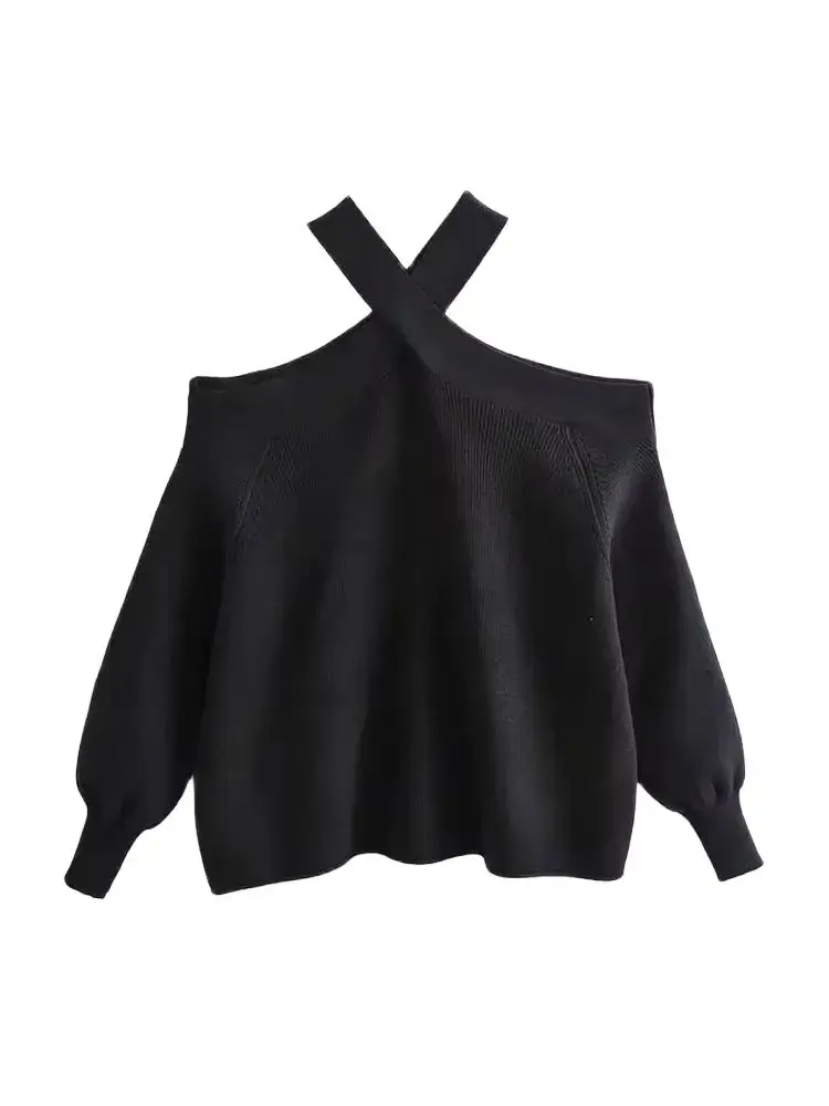 Women’s Loose Knit Halterneck Off-Shoulder Sweater
