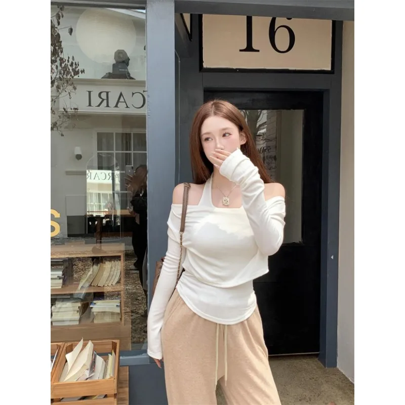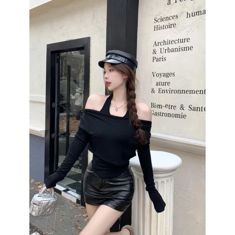 Women’s One Shoulder Fake Two Piece Slim Fit Long Sleeve Top
