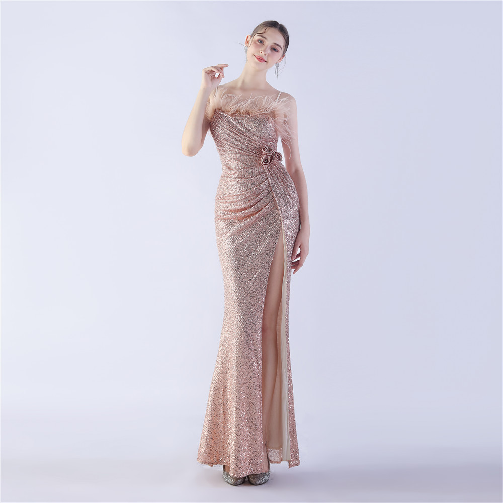 Women’s Ostrich Feather Floral High-End Evening Dress